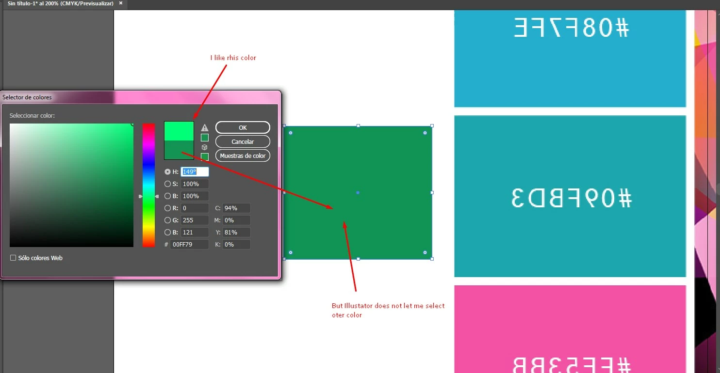 when I try to reach a more saturated color illustrator does not let me