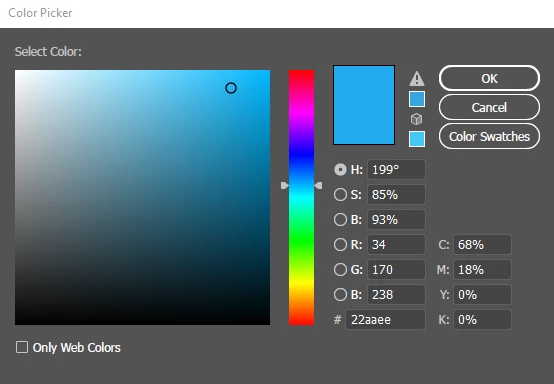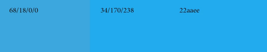 BUT if I type in 68/18/0/0 I get different RGB and hexagon codes back, and the color looks less bright: (you first have to select another color, before entering 68/18/0/0 and seeing the change)