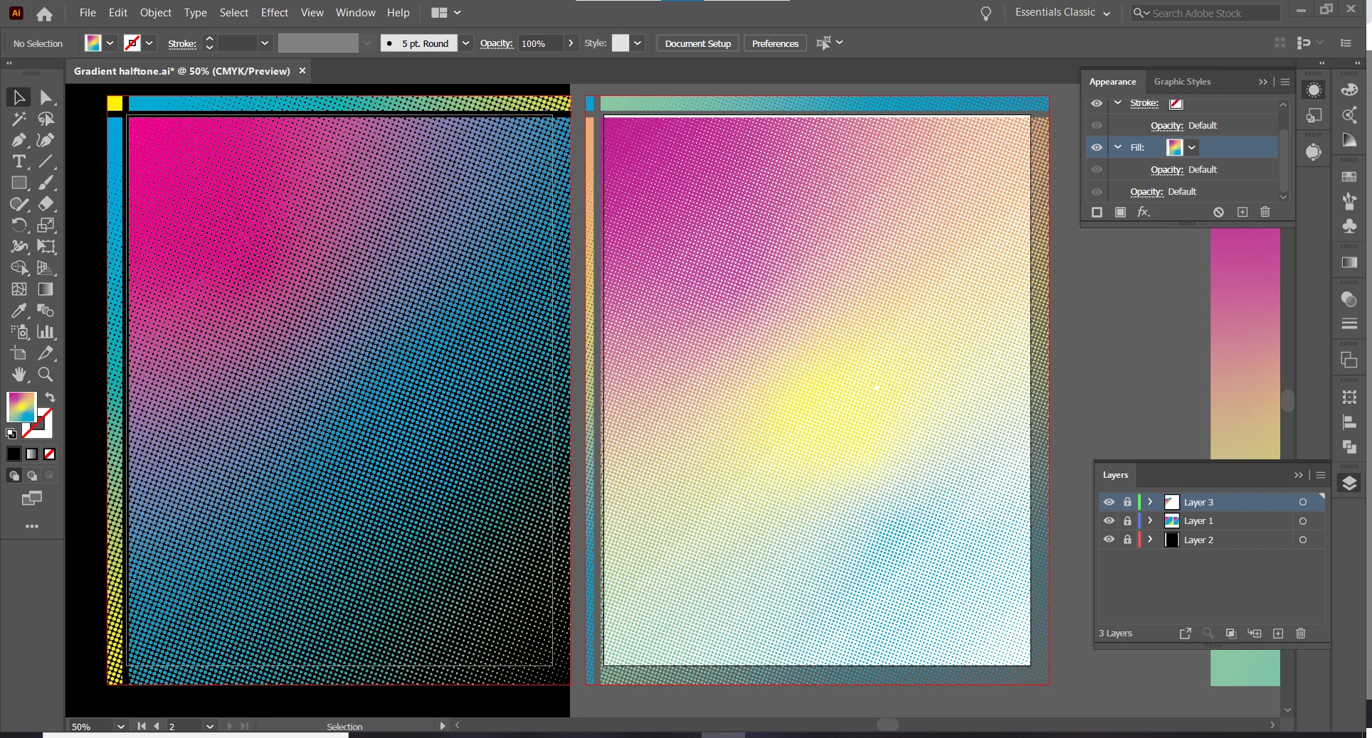 Does anybody know how to do a color gradient halftone in Illustrator? I can do a B/W halftone and I know how to color it with a solid color, but I want to color it with a gradient with 2 or 3 colors. Is that possible or am I just wasting my time?