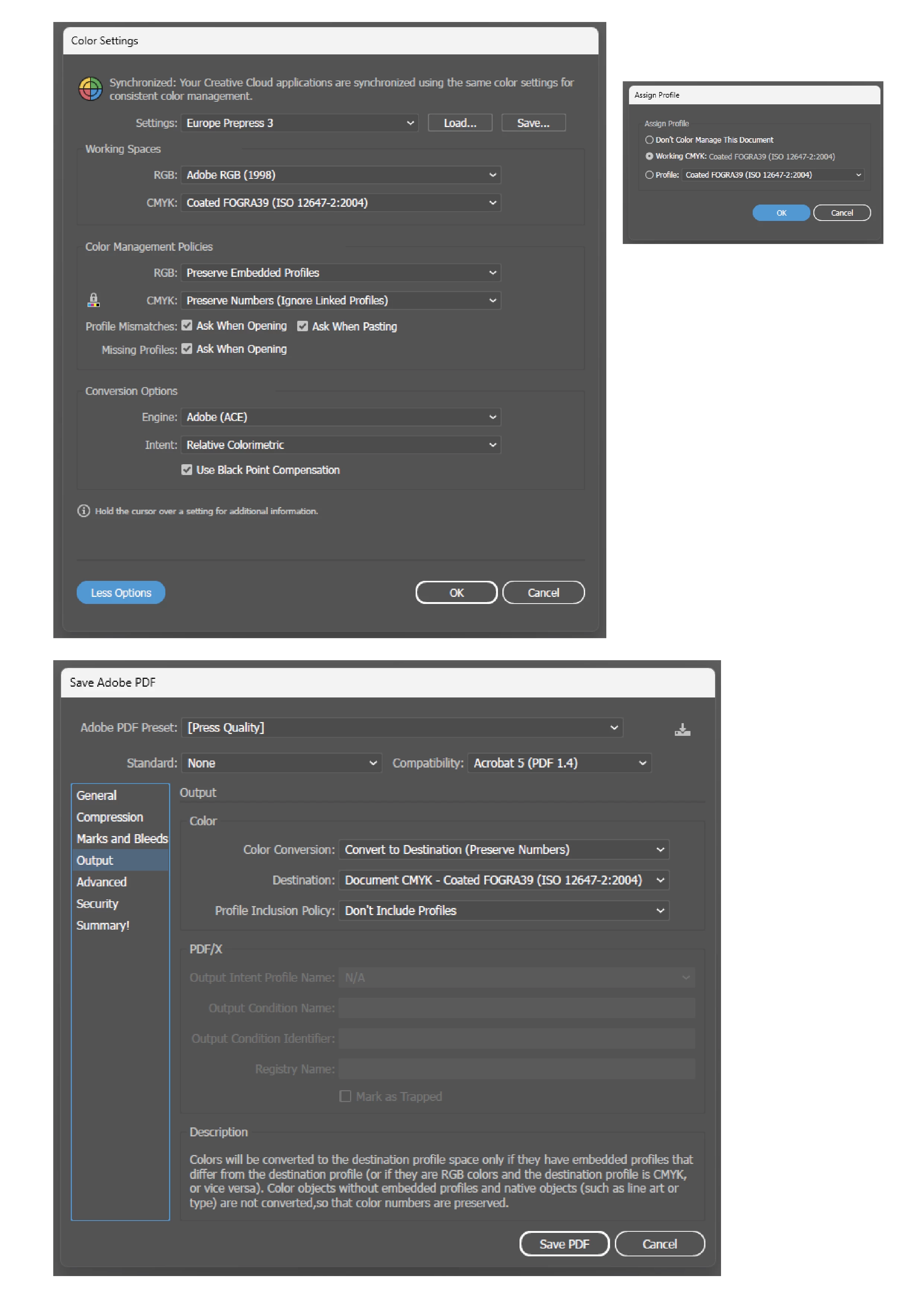 Color Settings and Adobe PDF Presets in Illustrator