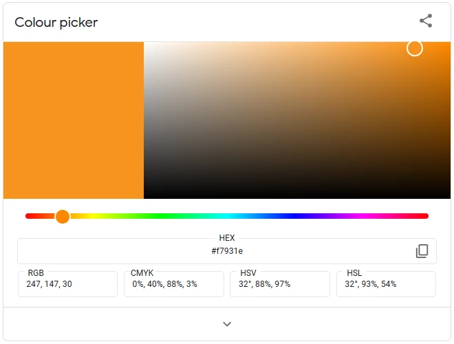 For example, I have made a logo and used these two colors in it, #F7931E and #1B1464. Then I created "logo usage guidelines" where I included color HEX codes, RGB, and CMYK values which were: