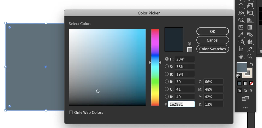 You can see in the color picker than I've chosen a dark gray. However, the actual color in the document appears shades ligher than it should.