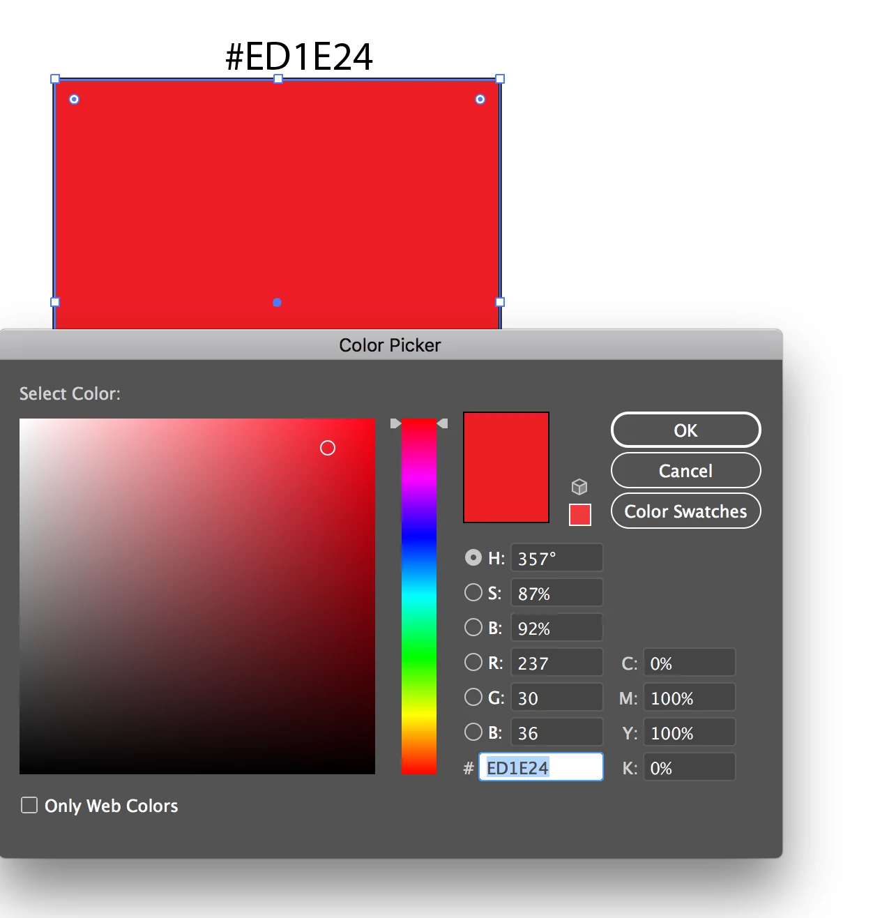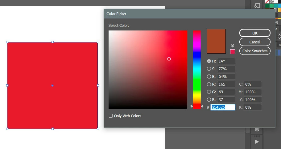 Am / have been having a problem with the colour picker palette. Effectively, it means that the preview does not reflect the selection. Below is a screen shot take in AI: