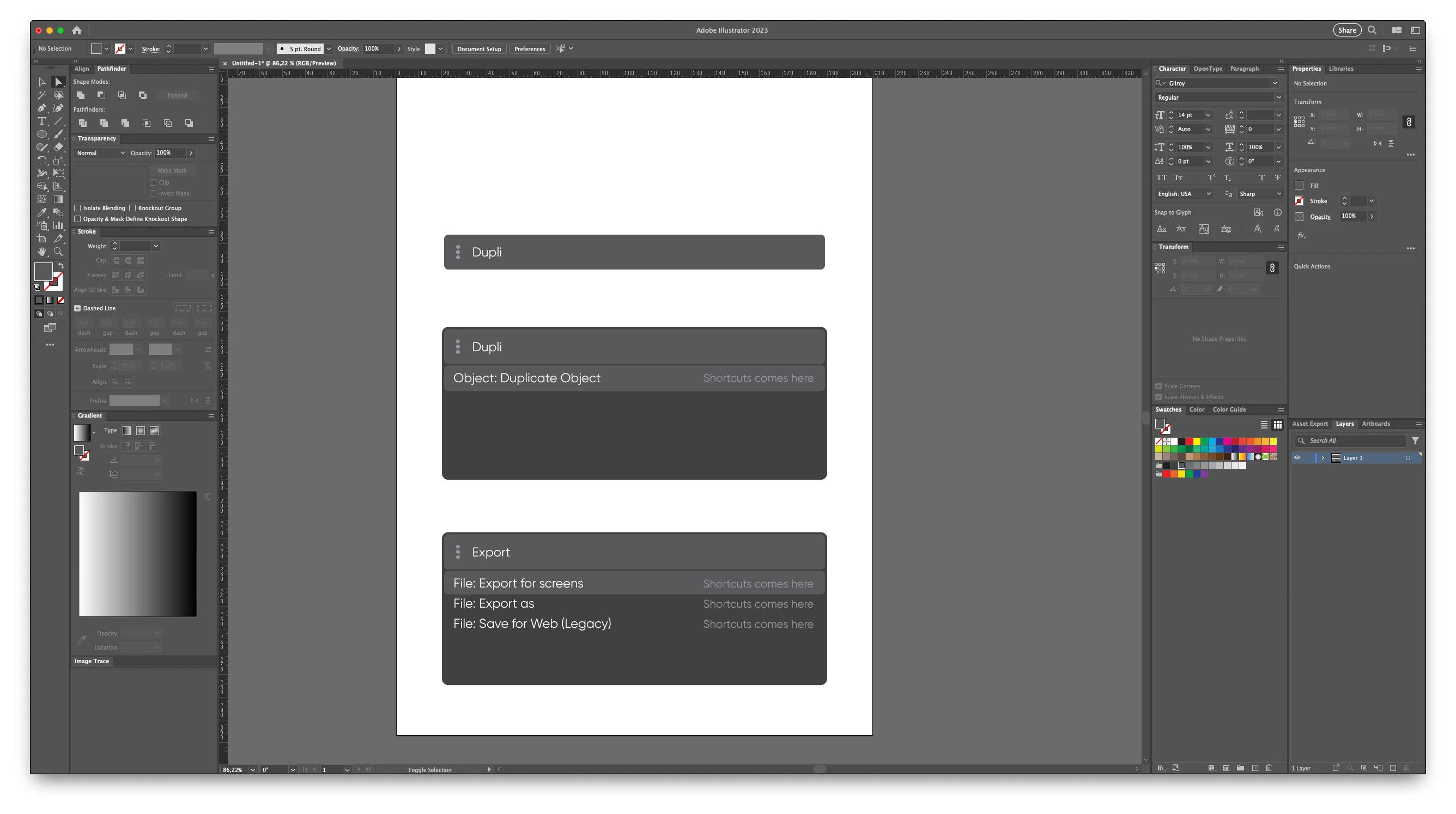 With a simple key combination; a COMMAND BAR appears to reach quicky to menu item with text writing. Eg: COMMAND+SHIFT+P