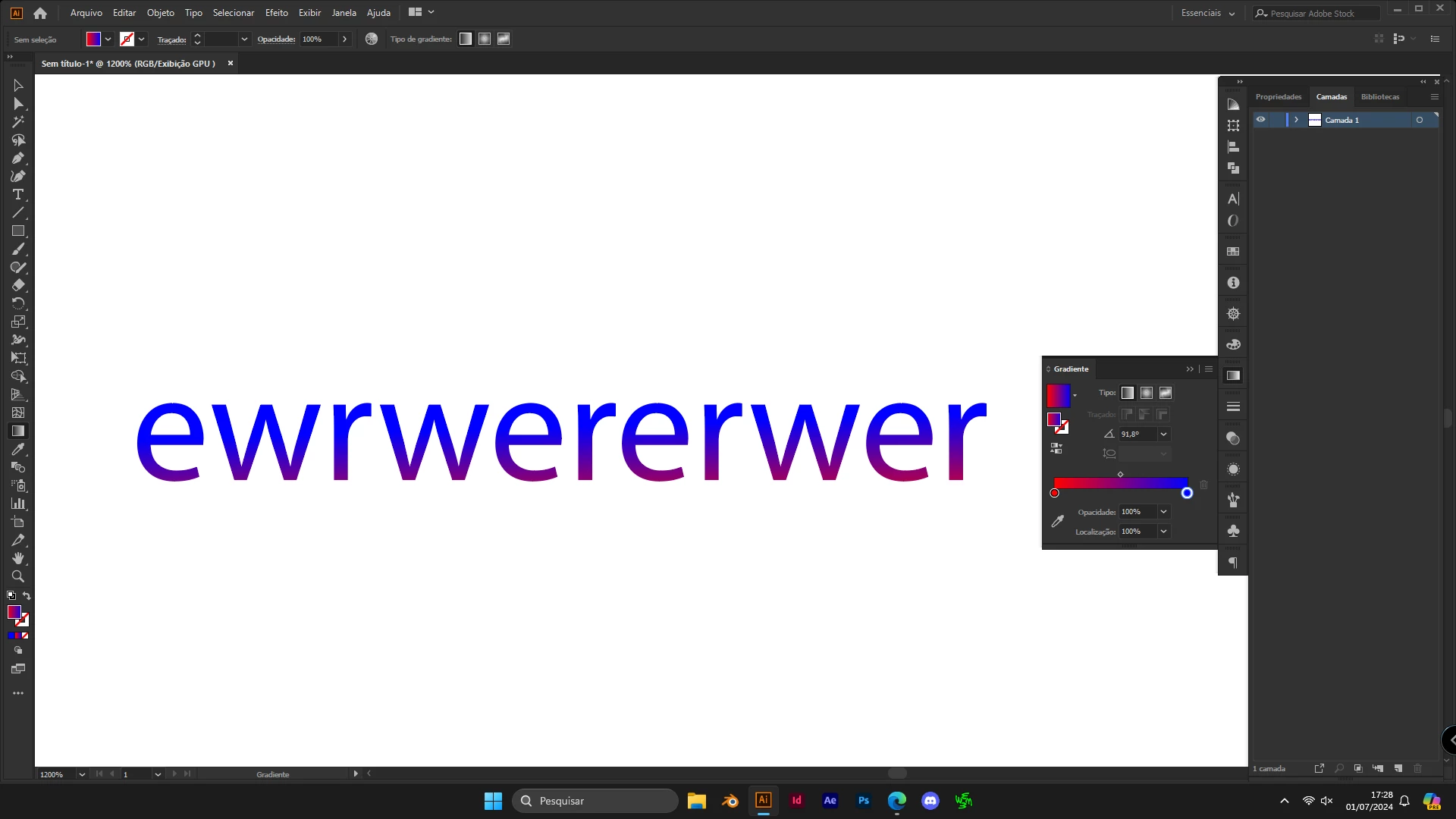 Then in the Appearance panel apply new fill to the text object. Put the gradient on it.