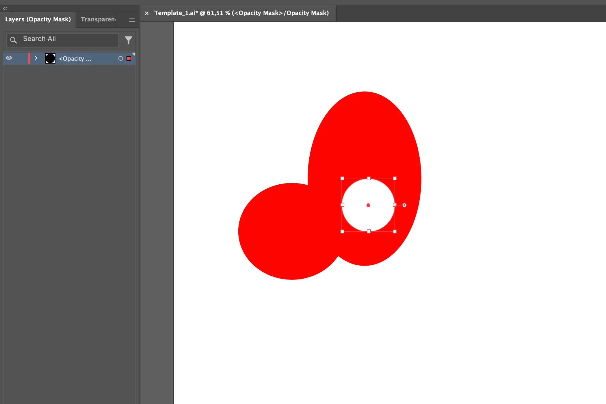 1) I have these 2 objects (2 red circles) placed on 2 separate layers, and wanted to create a mask for just one of them. So I selected its corresponding layer and used the Transparency menu to create a mask for it.