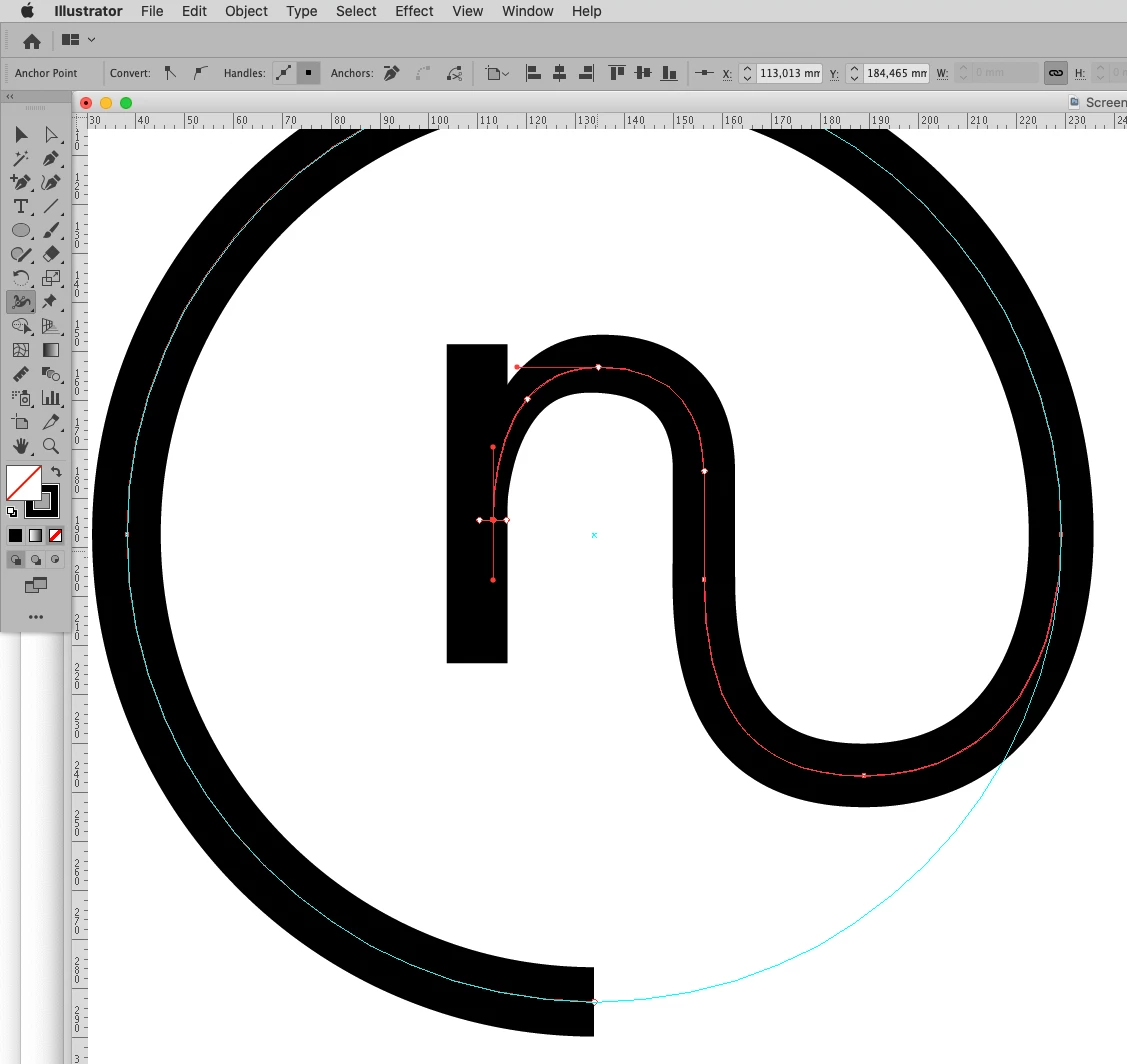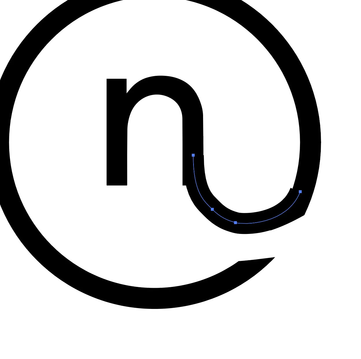 I'm working on a logo and want to connect the bottom right of the n in the attached picture with a path that will then curve into the outer circle. I can't seem to get the path to line up with the vertical of the bottom right of the n to fake it. is there a way to connect the path with the n so it's natural?