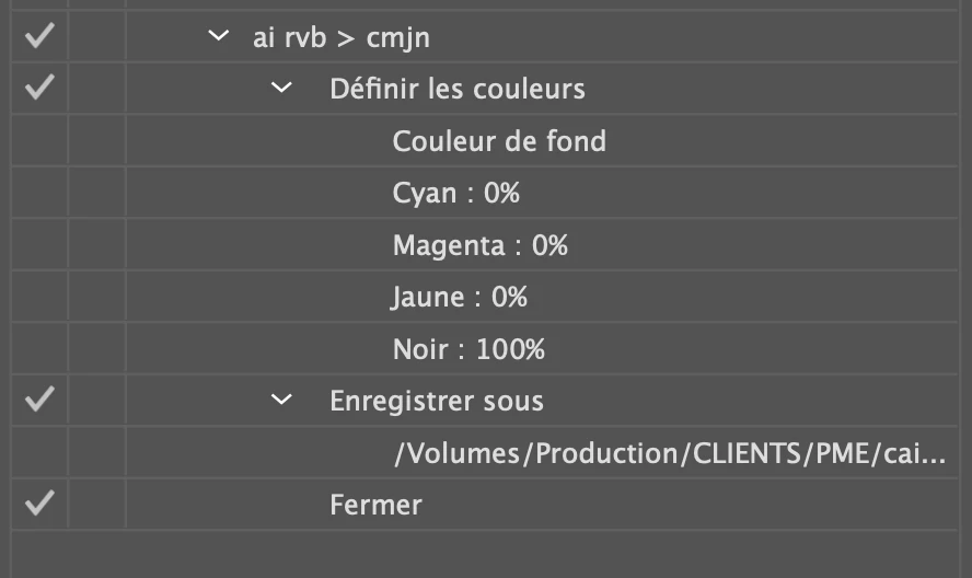 J’ai créé mon propre script mais celui-ci ne prend pas en compte l’action de changer le mode colorimétrique du document pour le passer de RVB à CMJN.