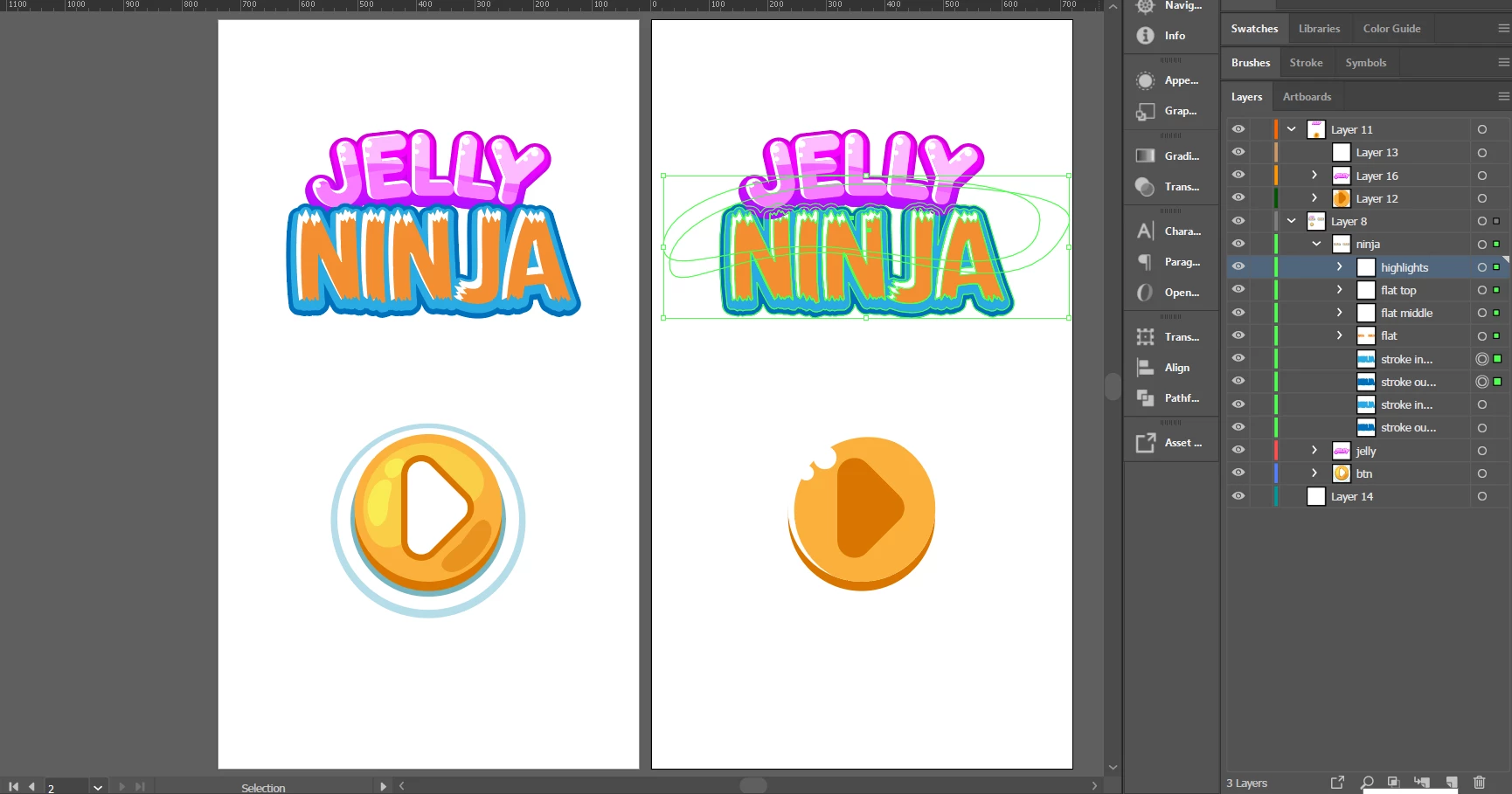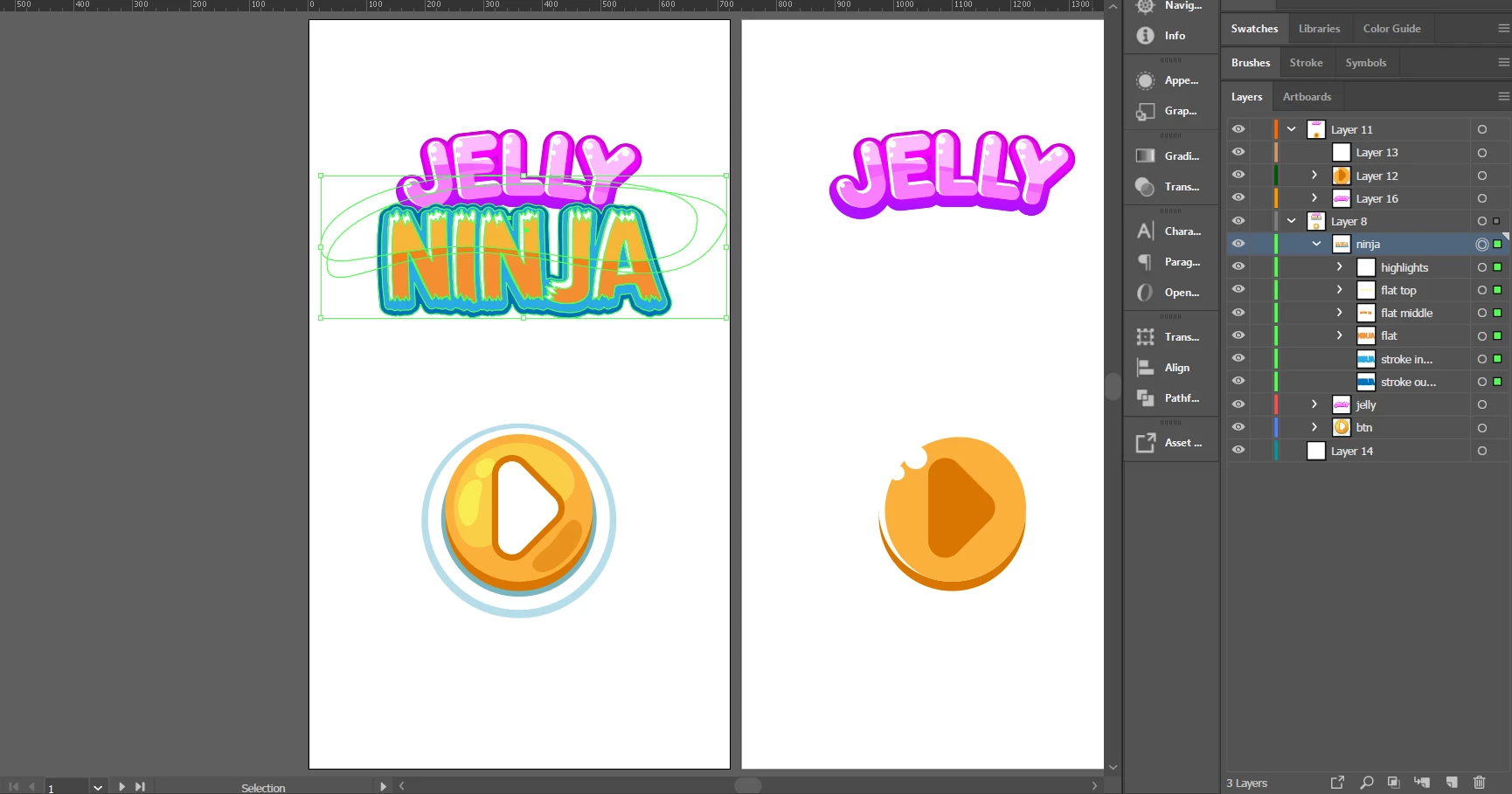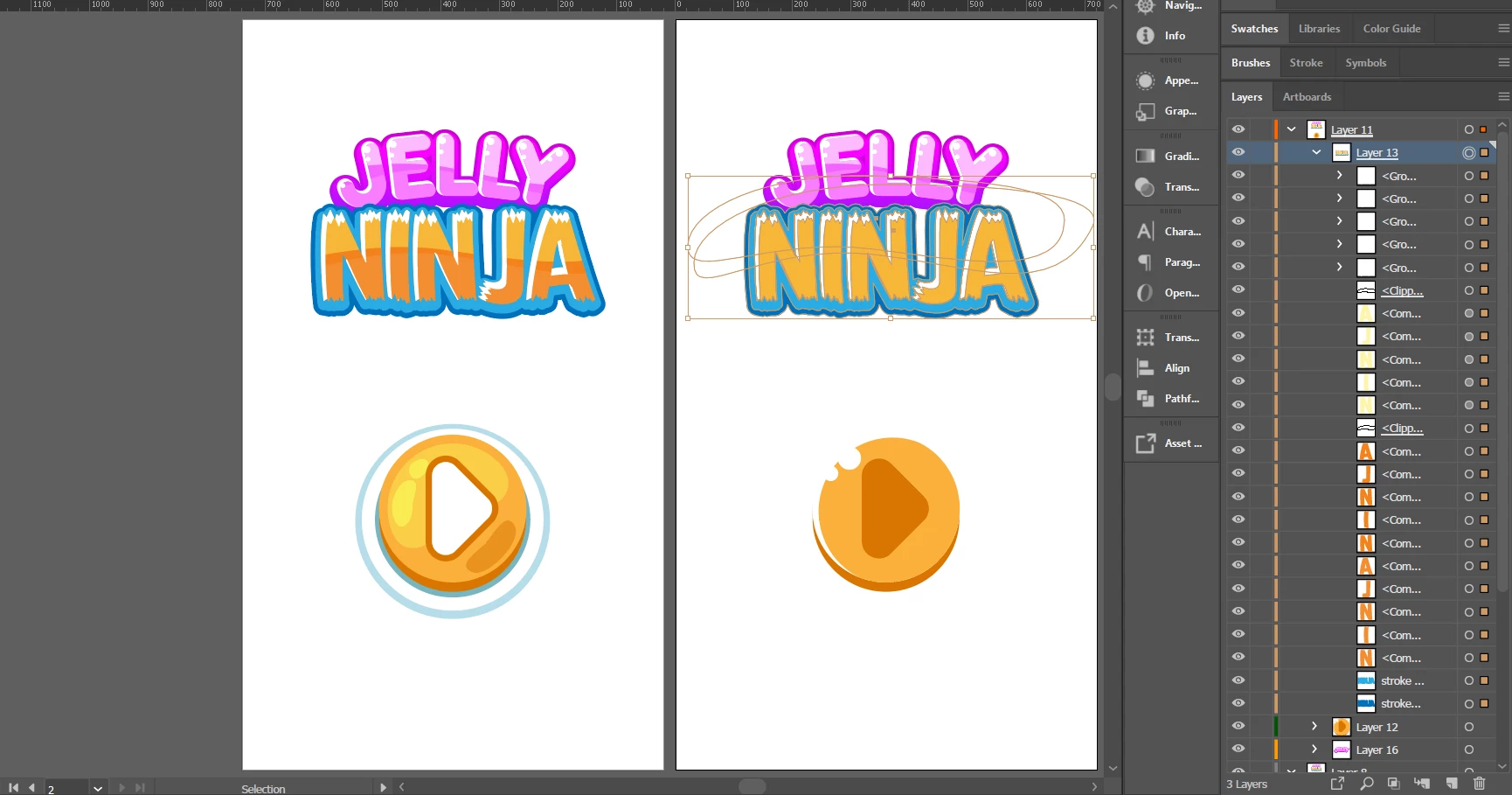 Screencap of me pasting the results. Right away we see the clipping masks are broken, and the sub-layers are no longer structured as they were. Comparatively, this does not occur when copying and pasting Jelly or the button. Also worth pointing out that the new layer is suddenly marked with an underline as though it were a clipping mask: