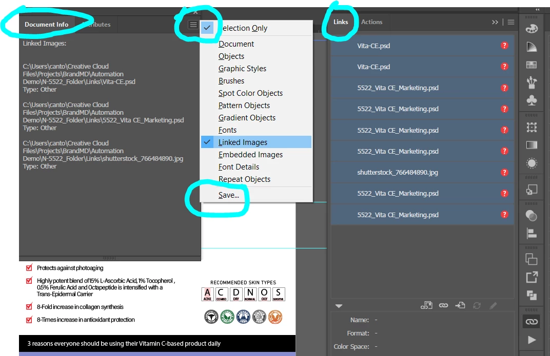 How do I copy the name of the linked file? I have dozens of missing links and need to search my hd to find them. The files names are long and there would be countless hours wasted trying to make sure each one I searched for was correct.