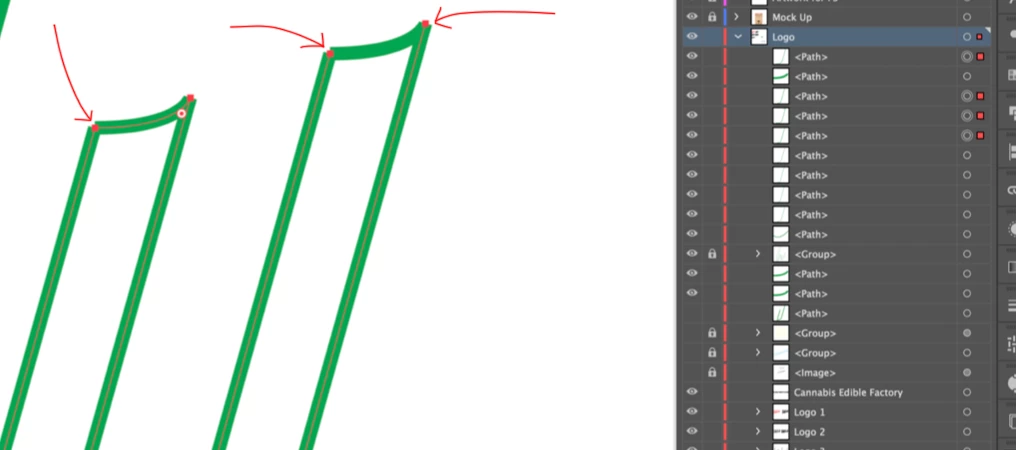 I'm designing a logo and on the last letter the corner widgets are not appearing like they have been throughout the entire shape. I have edges visible and corner widgets.