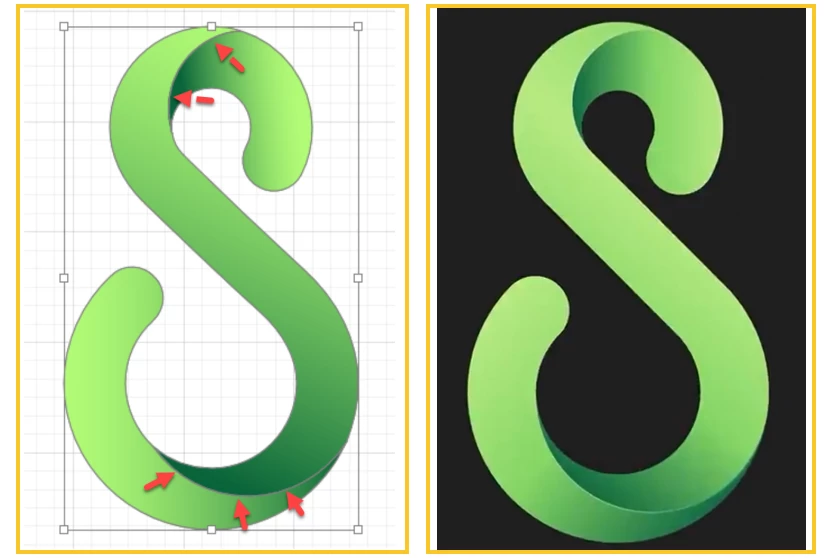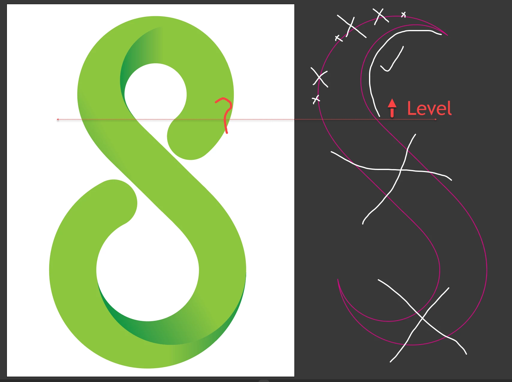 This a YouTube tutorial. All purple color line must be deleted except white color check marked line by me. How to find out the correct level of the remaining line because it must match with the logo?