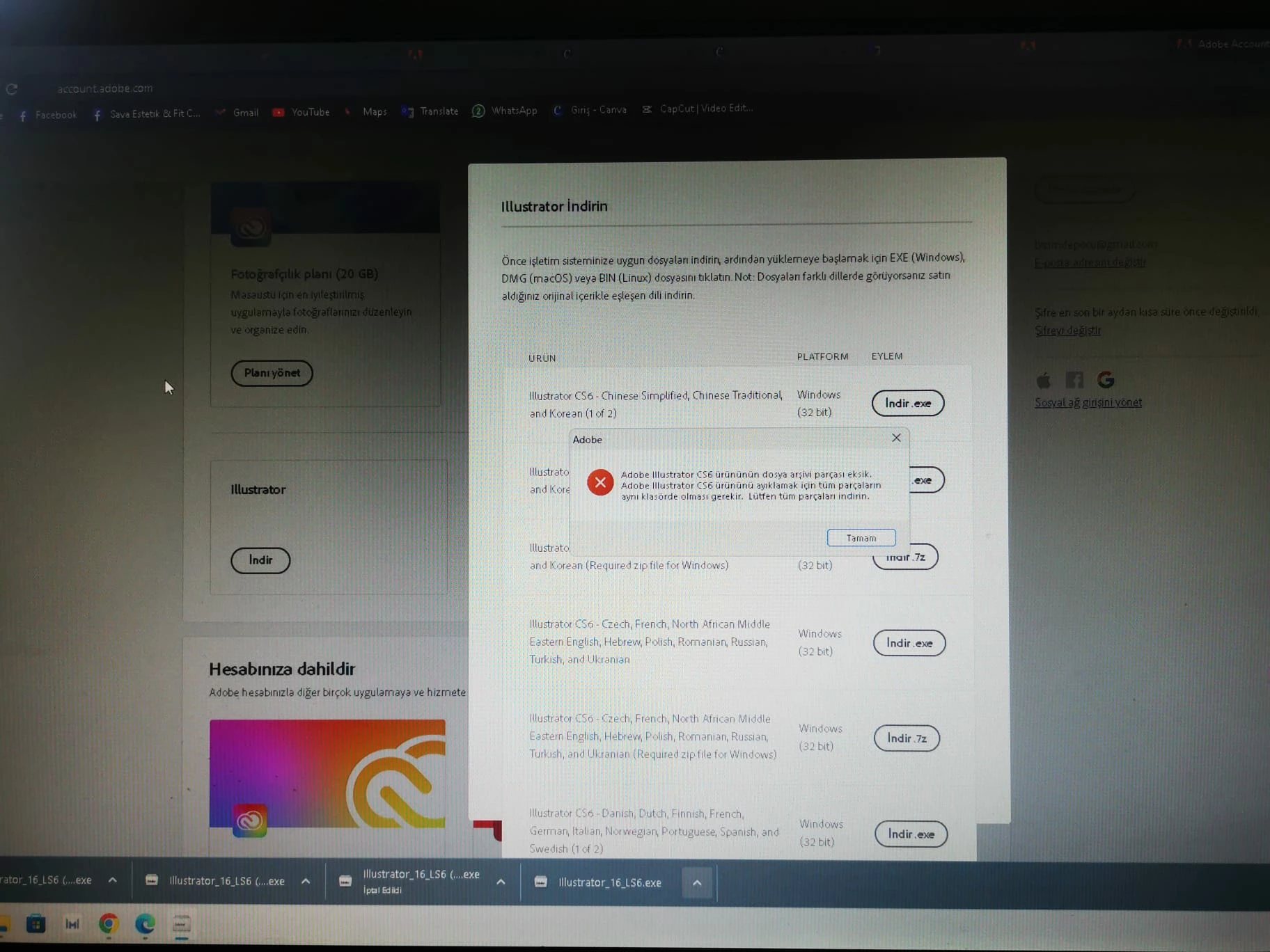Cs6 indirdim hata veryor. Acmiyor.bserial var