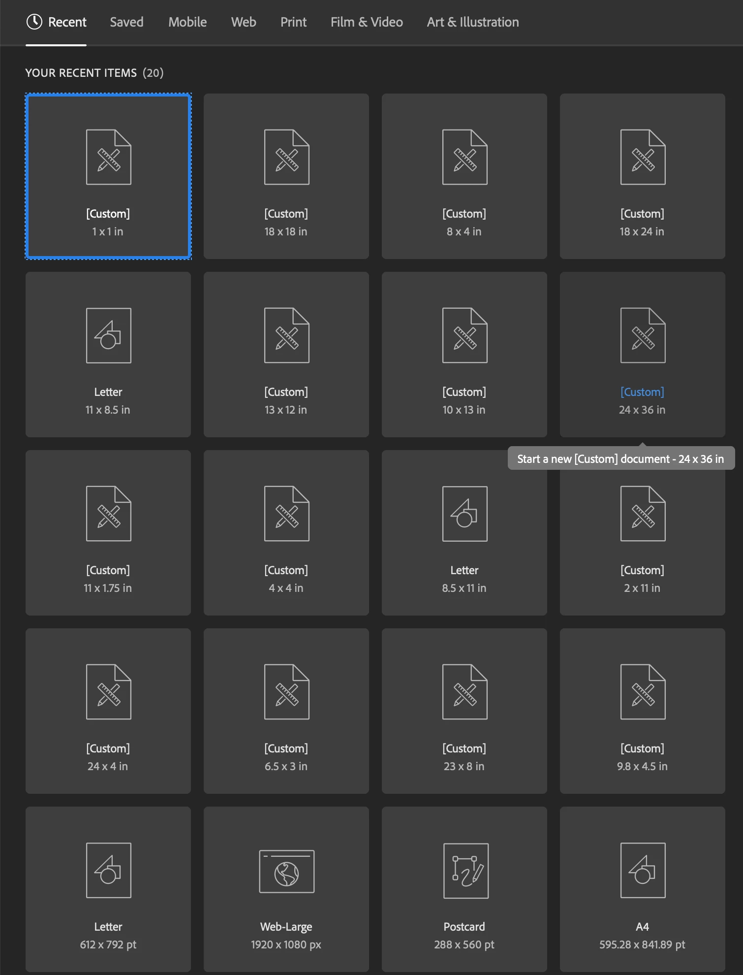 How can I delete unused artboard presets from "new file" screen in Illustrator?