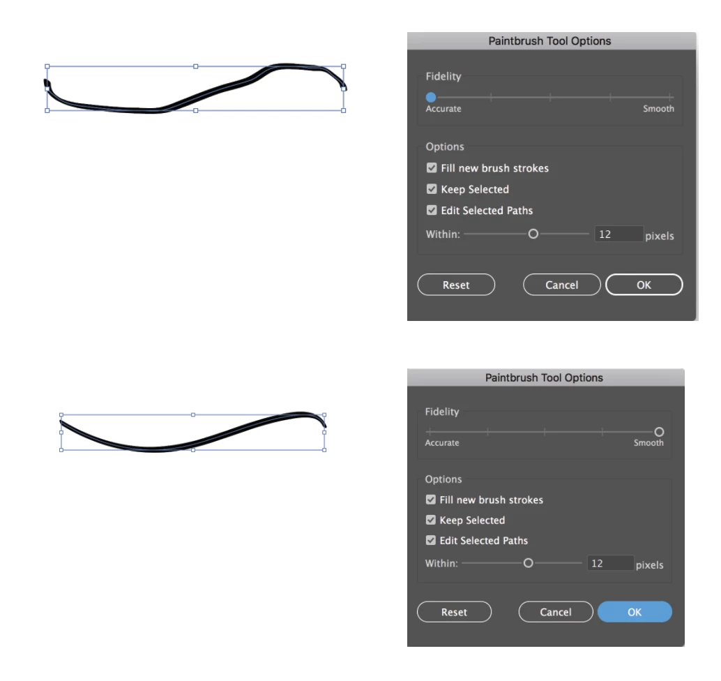 I double click the brush tool to get to the tool Options menu. All of the forum entries state that there should be a fidelity and a smoothness slider. I only see Fidelity, with a range of accurate to smooth. I've lowered it all the way down to Accurate but I still get real smooth brush strokes. I'm trying to use a Wacom tablet but even without out it I still don't get the desired result. Heck, if I draw a square it gets smoothed to a circle. That's how bad it is. I've played around with the other settings but nothing works. I just want to get the same results that I get when I disable smoothing in Photoshop.