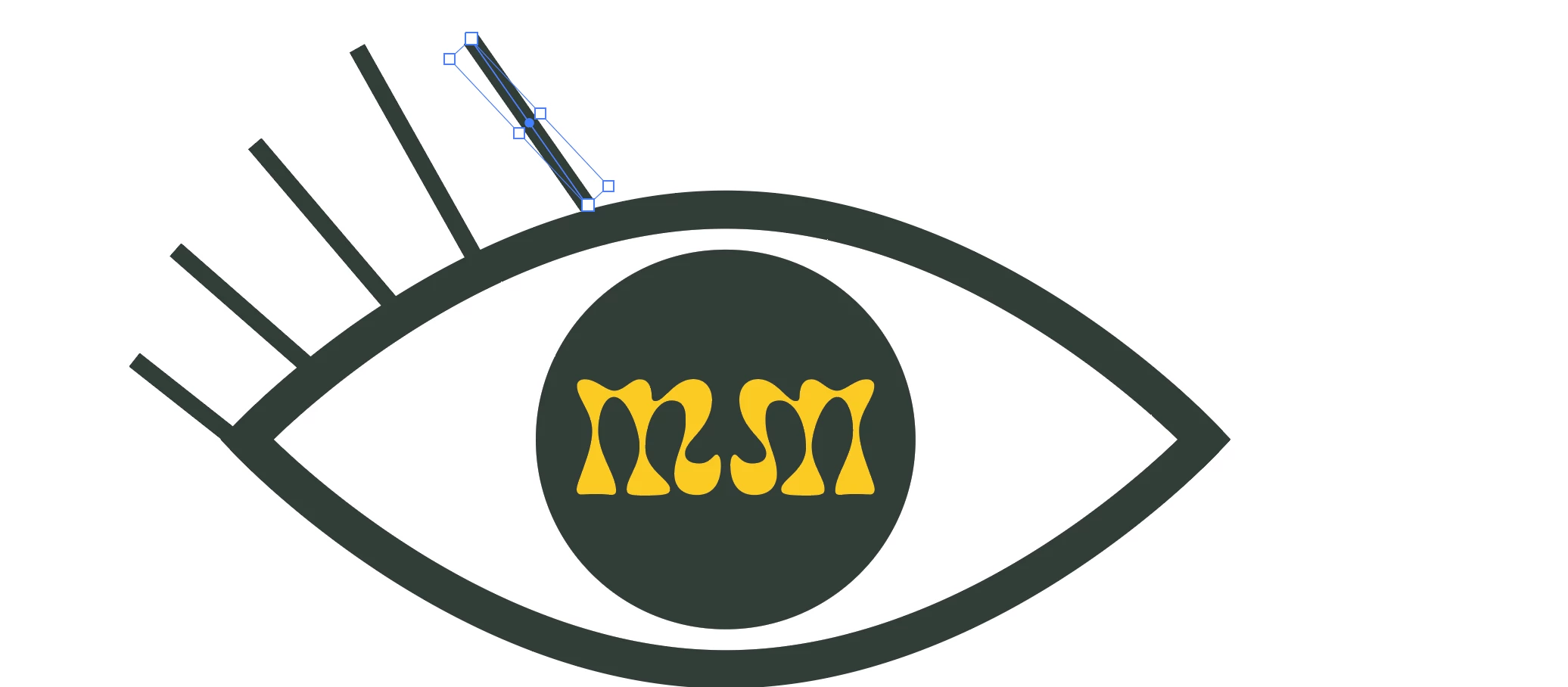 4) Align the smaller circle from 3) horizontally and move it vertically to obtain the desired lengths and overall shape of the eyelashes;