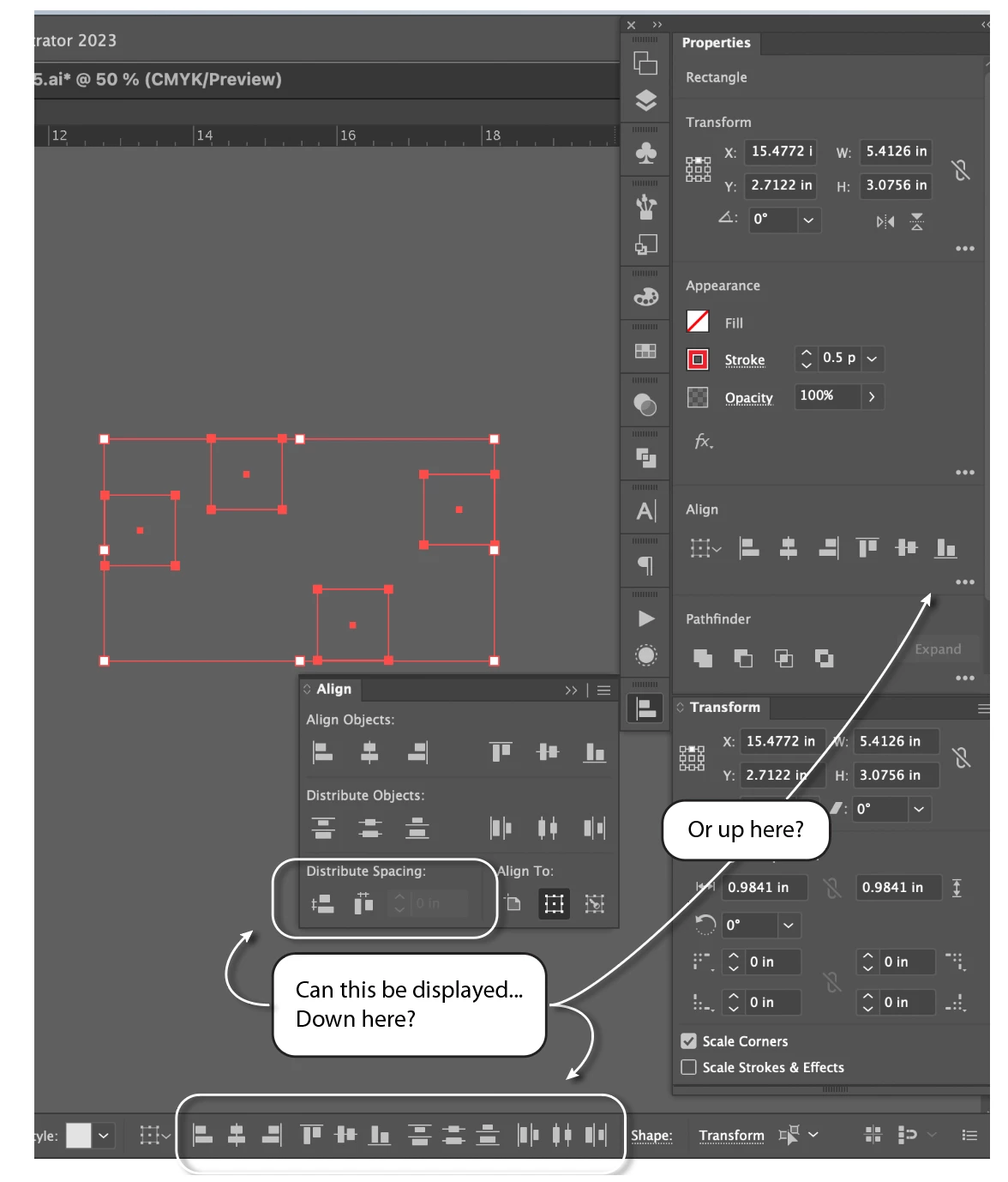 Is there any way to show the Distribute Spacing buttons of the Align panel in the tool ribbon or Properties panel? Or perhaps somewhere more easily accessible w/o cluttering up my screen too much.