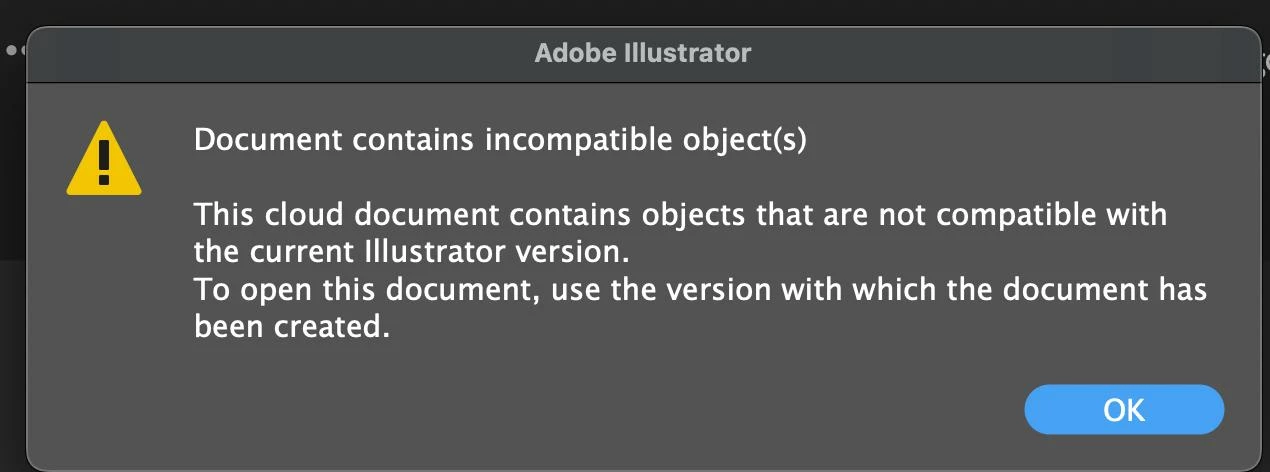 I was working on a project, I closed the file normally and when I tried to open it some time later, I got the message: Document contains incompatible objects. I tried to use previous versions as suggested by the same error and I can't open it, I need this file to work. Does anyone know how to fix this?