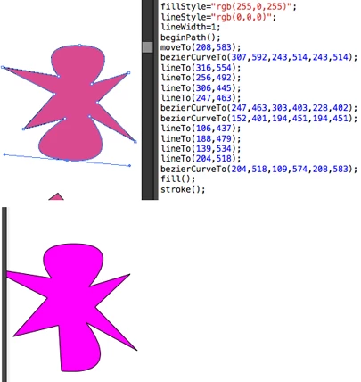 It converts Illustrator shapes into code (Obj-C, C++, JavaScript, Processing, ActionScript 3, JSON, Bezier array).