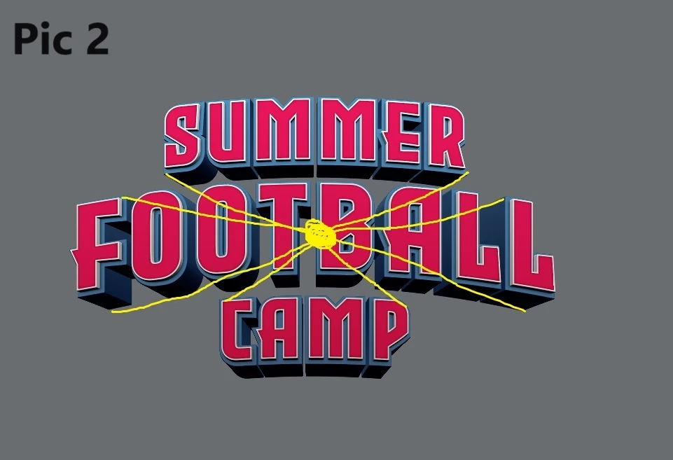 BUT I want to REMOVE: the current vanishing point (currently sloping downwards - Pic 1), and EDIT it, so the vanishing point recedes to the middle (between the letters T and B as circled and highlighted with the yellow lines - Pic 2).