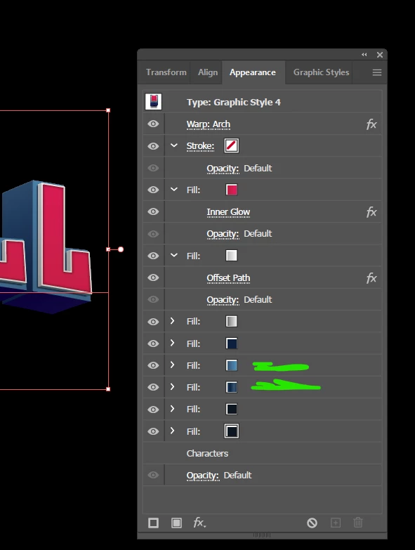 I downloaded a free editable Illustrator text effect file (pic below) and……