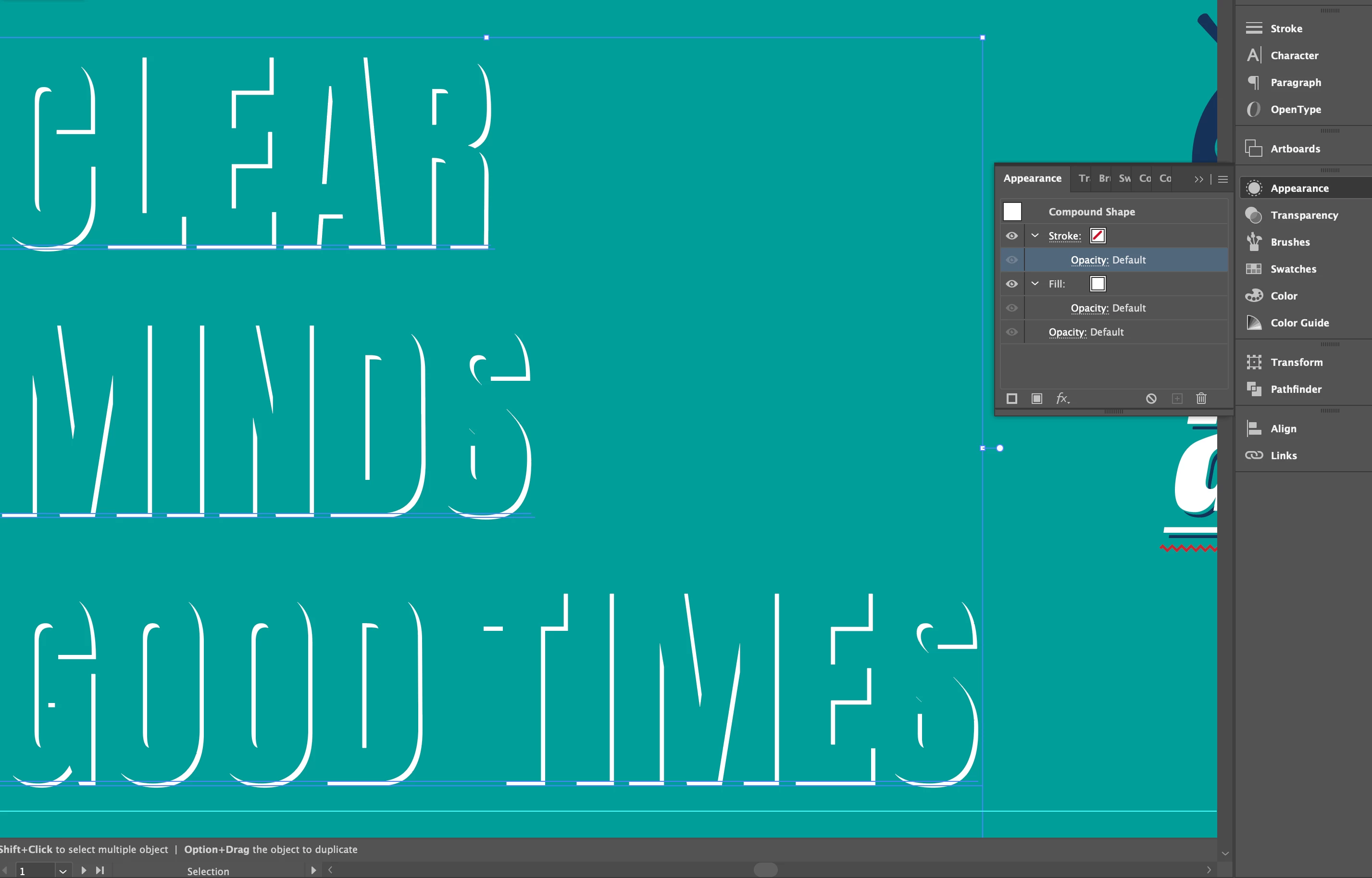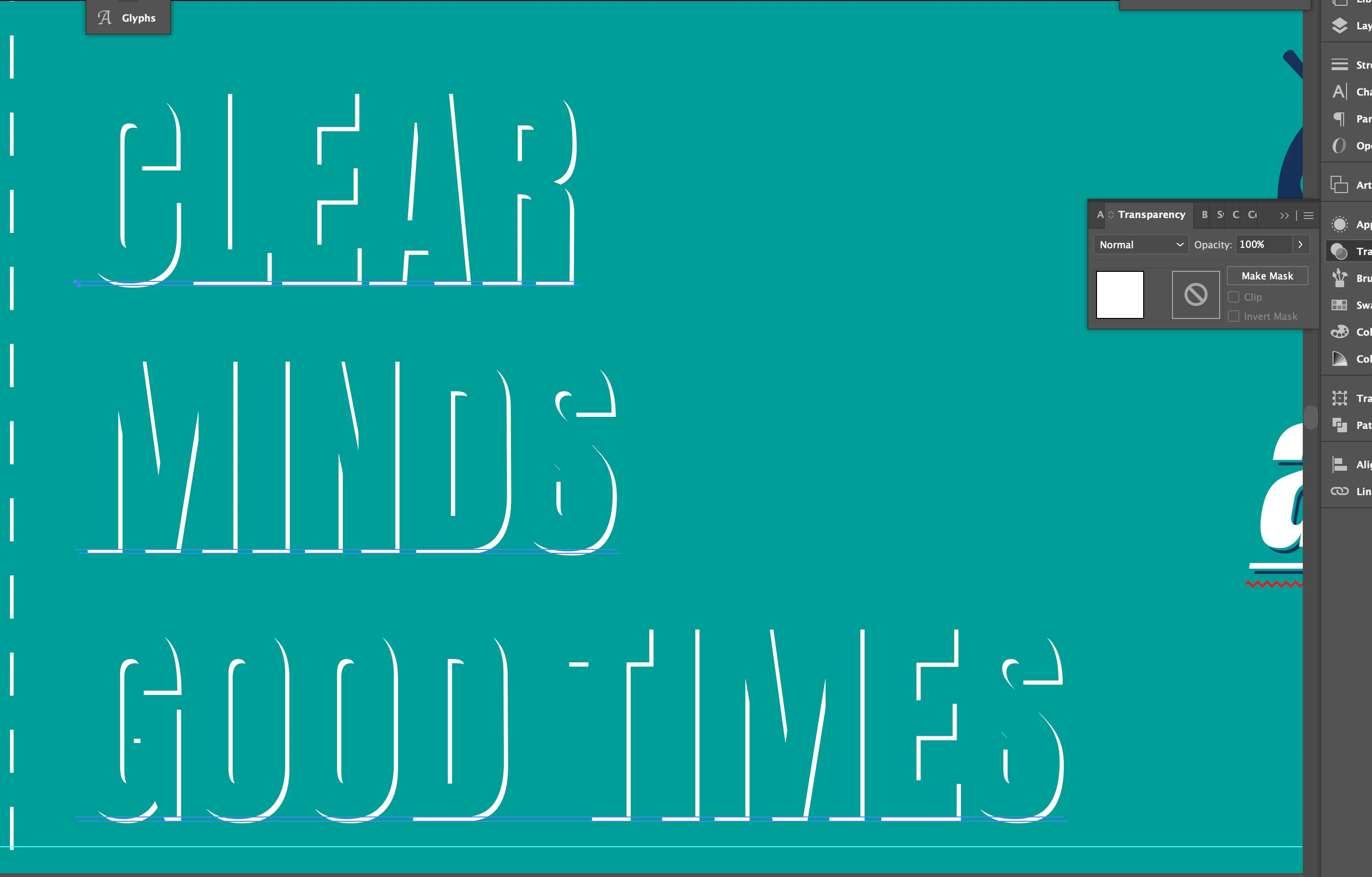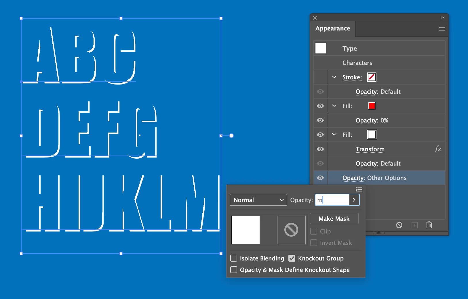 All text is editable. Nothing is masked and nothing is grouped. When click, both layers appear as a compound shape in the transparency panel. Blending is normal. Opacity 100%.