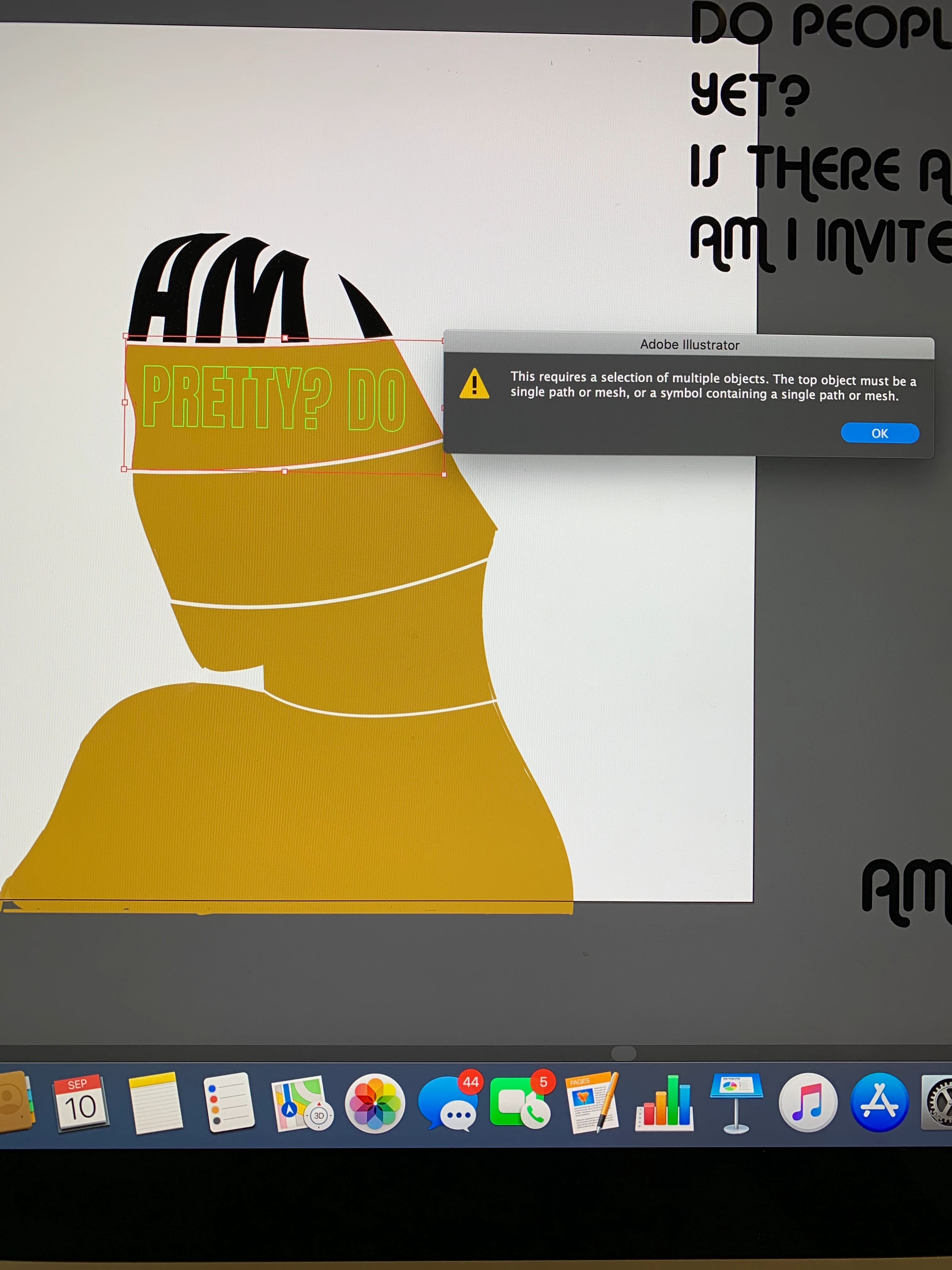 I'm using Envelope Distort > make with top object for a project of mine. I used the shape builder to cut out my shapes, and am using a layer underneath of that for my text. As you can see, I got the first piece to merge fine. But when I went to distort my second piece, I got an error "this requires a selection of multiple objects. The top object must be a single path or mesh....." However, both my top layer and my text (underneath) are selected.