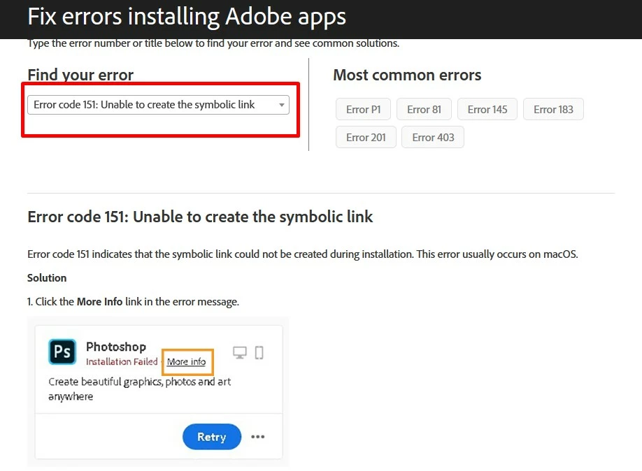 We have tried many times and still unable to download Illustrator, continue to get: Error Code: 151. Unable to create the symbolic link.
