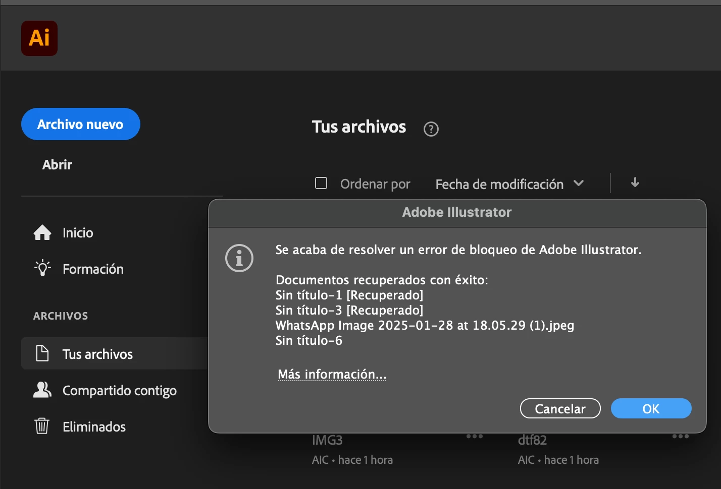 Se recuperaron archivos y no los abre, me sale este recuadro pero no recupera nada, ya reinicie mi macbook y sigue saliendo