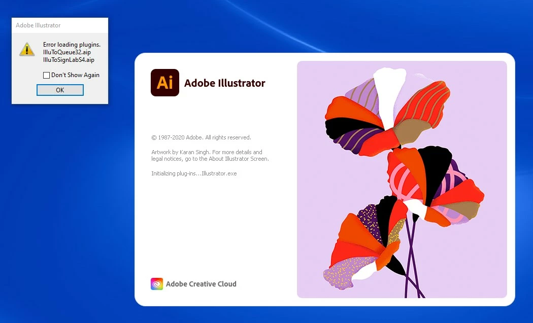 Error loading plugins/ Missing Plugins while launching Illustrator on Windows machine.