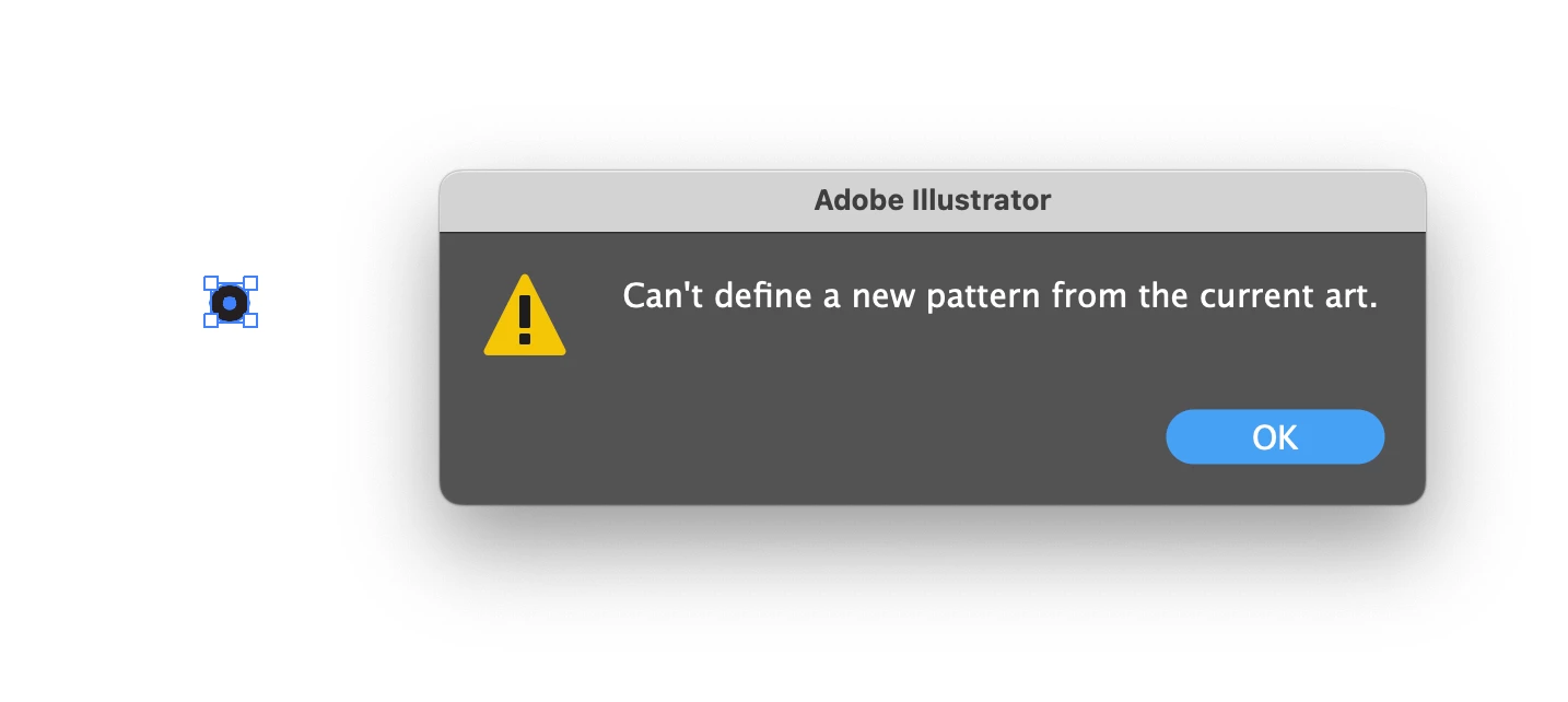 I've used the "Make Pattern" hundreds of time before, but now when I select an object and click "Make Pattern" I only get an error message that says "Can't define a new pattern from the current art." The current art is litterally just an ellipse, nothing complicated. What am I missing here?
