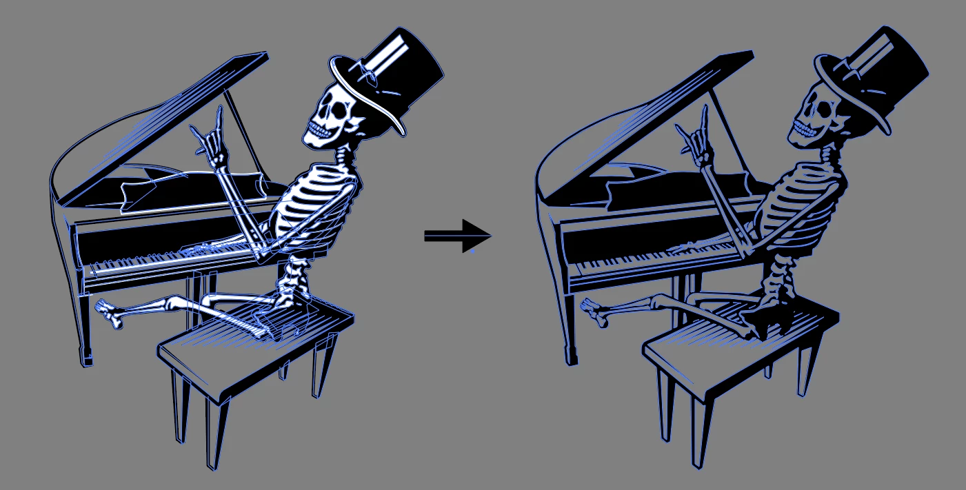 To explain it in a different way, the end result would be similar in effect to rasterizing the graphic in black and white, and then using image trace and ignoring the negative space color. This is not a valid solution as it will significantly modify your paths, and this proposed feature would keep your vector artwork as close to the input as possible with little effort.