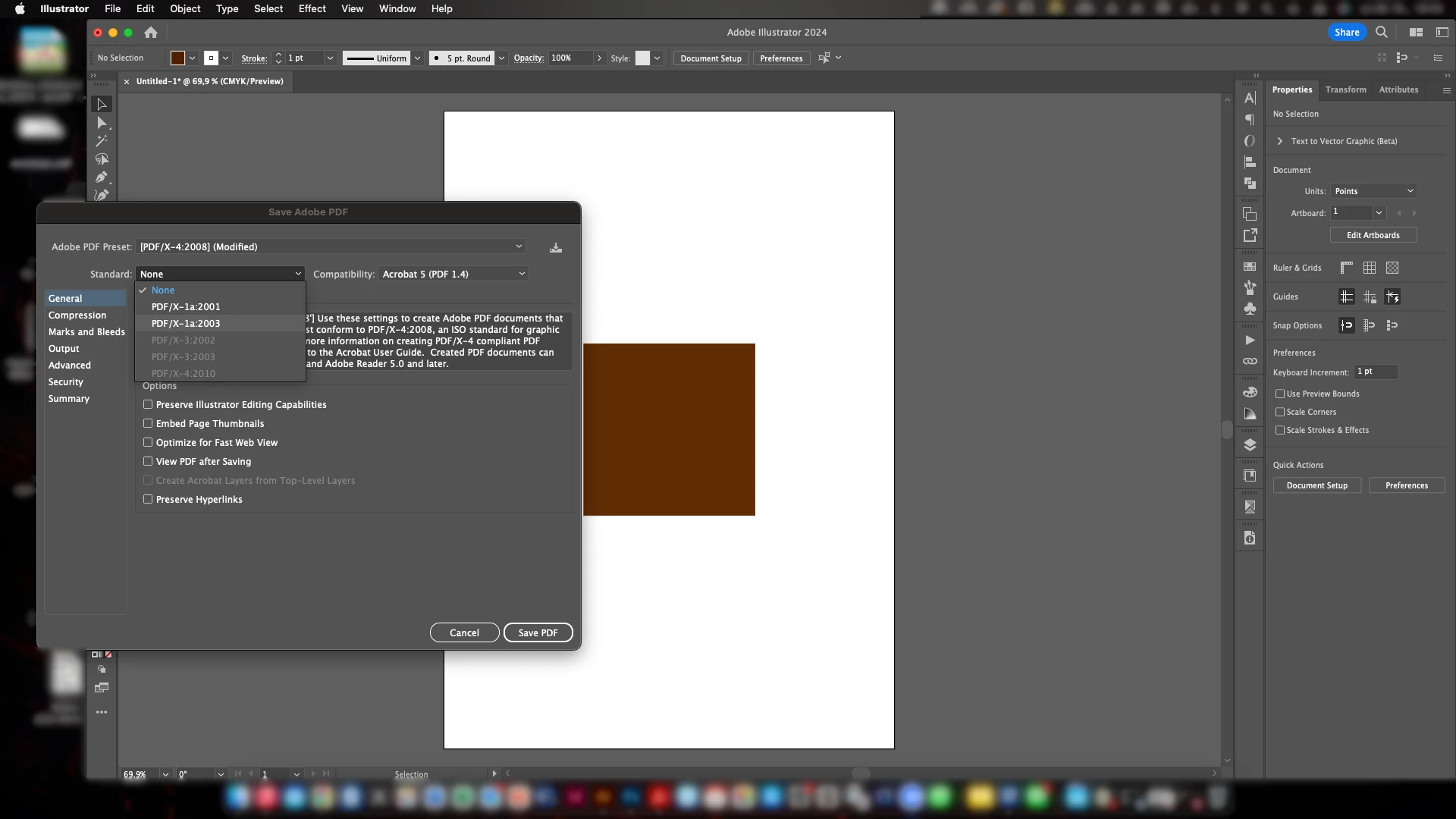 Hi, please advice for Illustrator 28.0. When exporting to PDF/x-4:2008, I don't have the standard PDF/x-3 and PDF/x-4 options available (the options are greyed out) only the PDF/x-1 options are enabled and when exporting it makes disgusting lines around the objects and messes up the drop shadow as well.