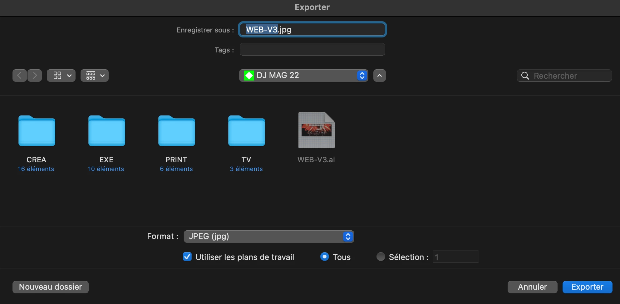 Export jpeg et changement de nom de fichiers