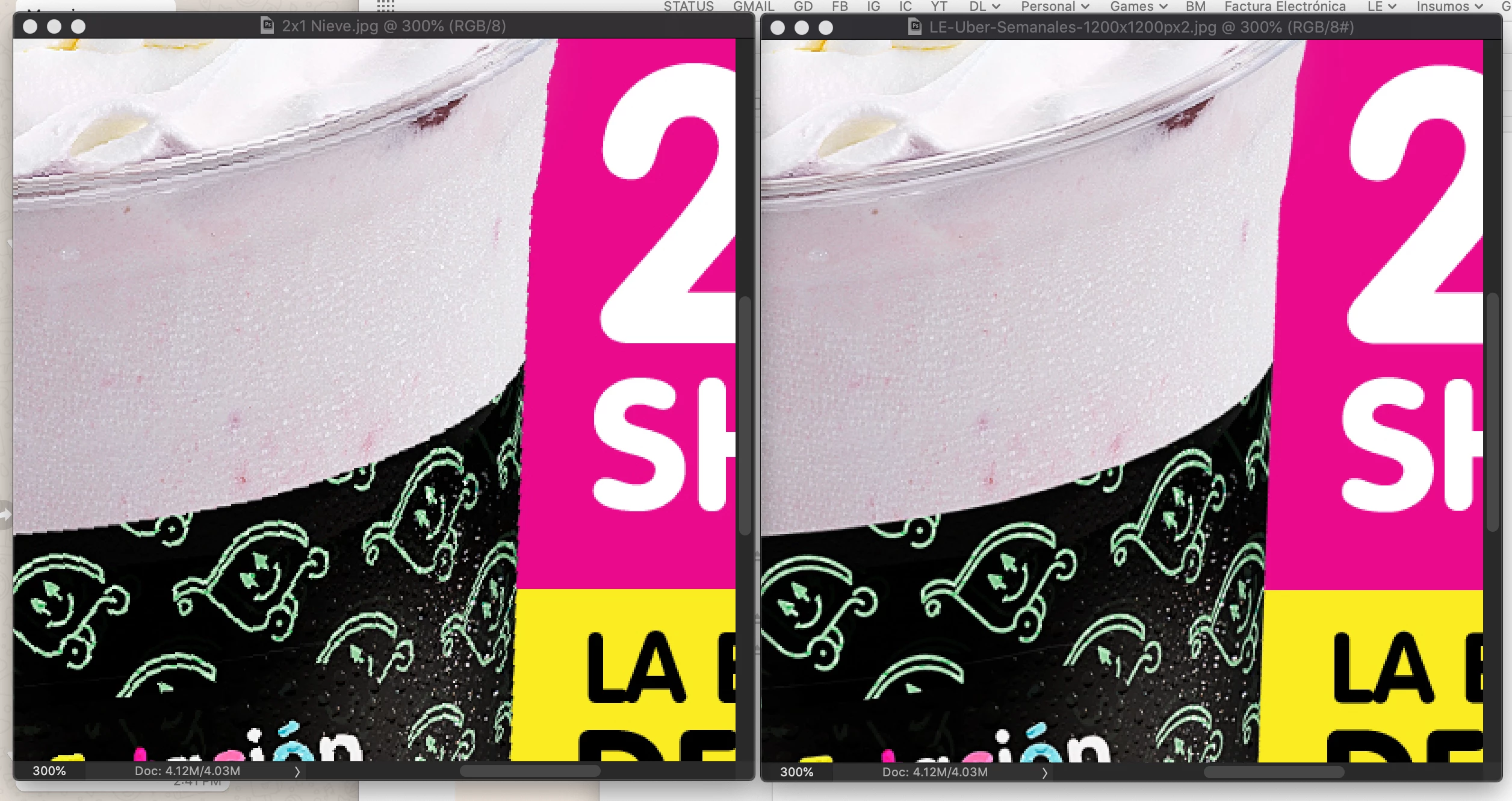 the LEFT image is the JPG 100 quality produced using Export for Screens and the image on the RIGHT is a JPG in max quality produced by the save for web command.
