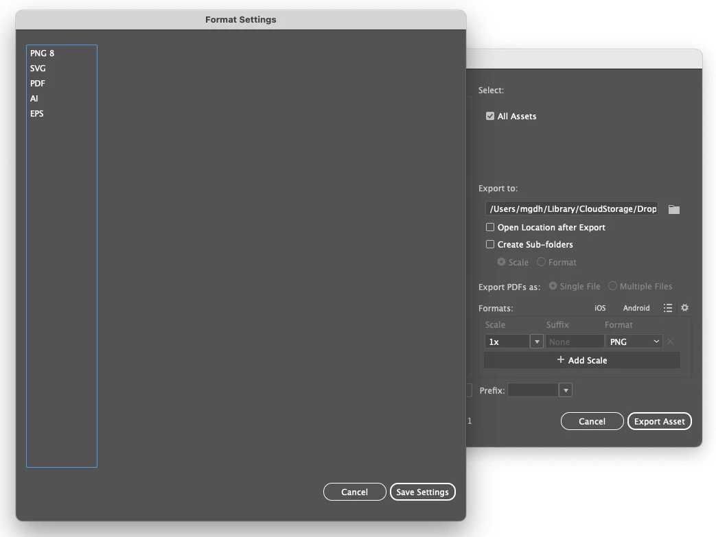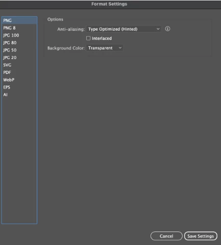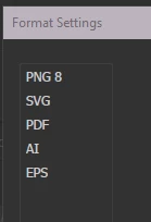 Export Selections Format Settings Missing Illustrator 29.8.1