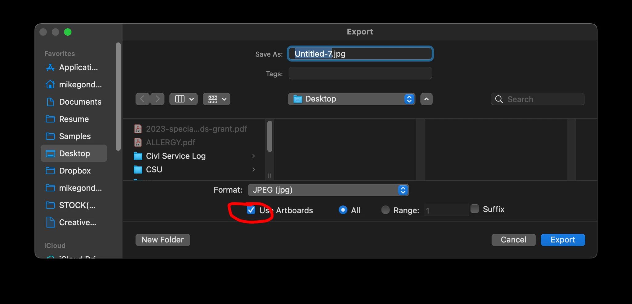 export specific size image based on artboard size