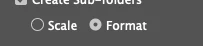 What is the difference between Scale or Format opinions on the export for screens panel?