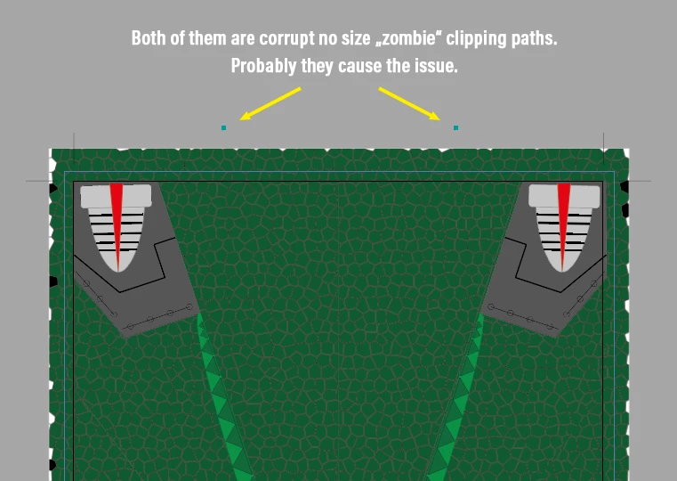 Look at the centre of the first panel, there are two spines instead of one cut in two...