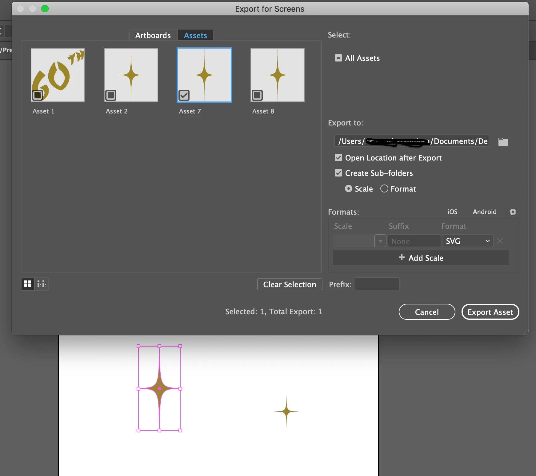 How do I export just the selection of a circle that has an effect added to it from Illustrator?