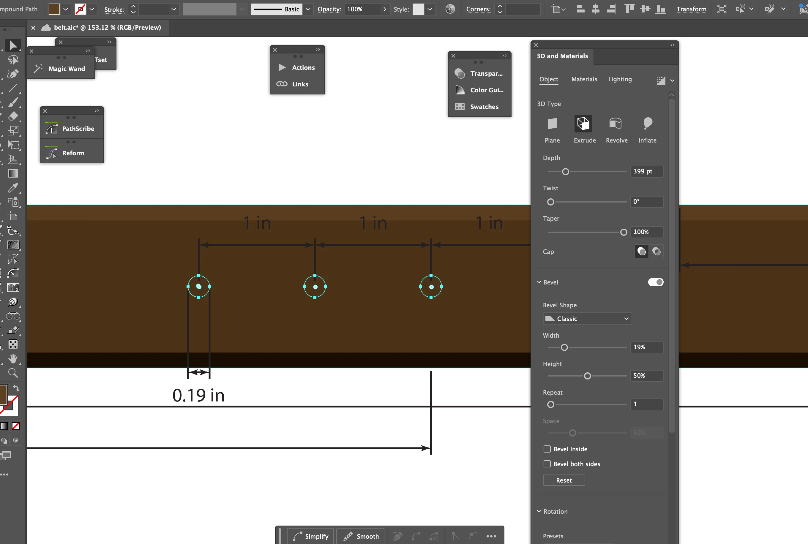 Later, he applied the Extrude & Bevel effect, and then expanded the appearance.