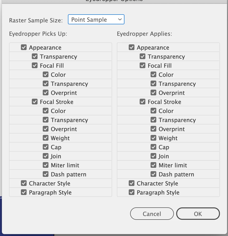 Eyedropper sometimes works sometimes doesn't. In this grab I'm trying to colour the text the same colour as the yellow graphic. Dropper picks up colour (see swatch pane) but does not apply it to text.