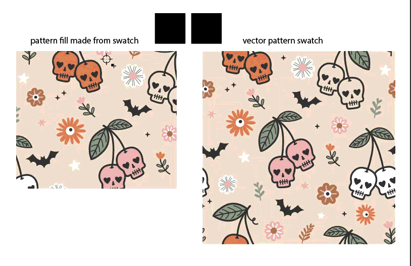 If I eyedropper a color from the vector art or pixel image I use to make a pattern swatch, I get the correct color. If I eyedropper (with shift held down) over a shape that is filled with that same pattern, I get the wrong color. Not sure if this is a bug or just a complicated color profile issue, but it occurs only in pattern-filled shapes, whether the pattern is generated from vector art or from an embedded pixel image.
