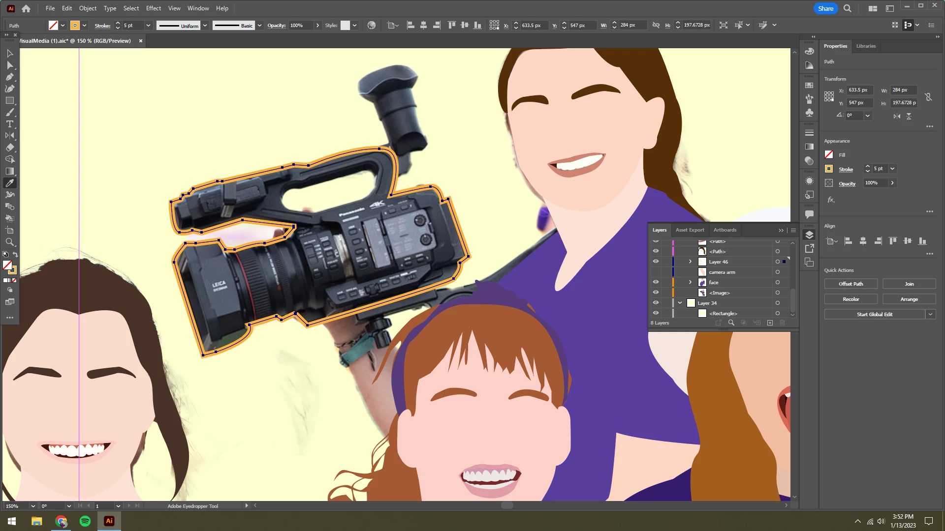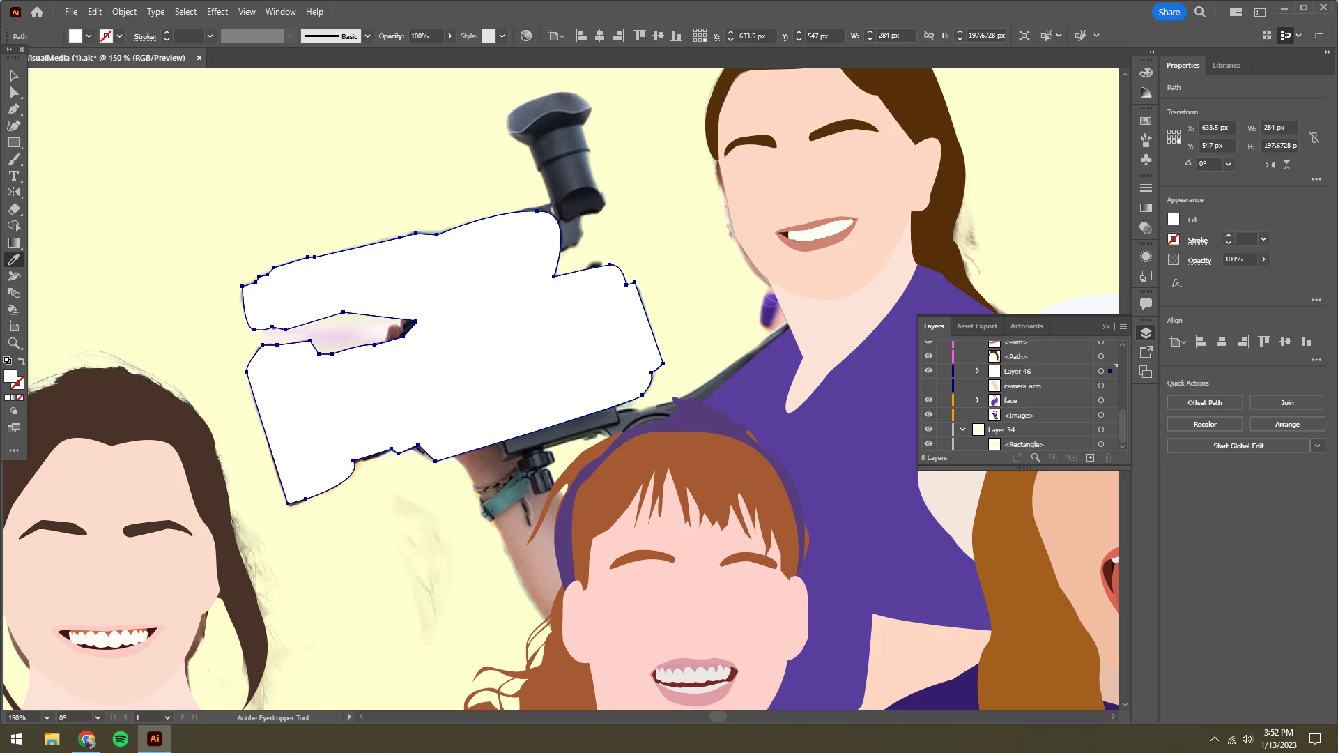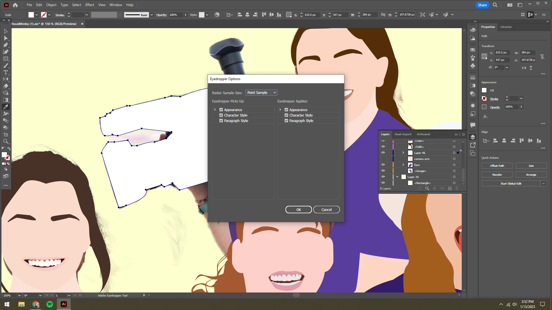 Help!! I'm creating a group 'faceless' portrait and I'm not able to get the eyedropper to pick a color from the photo I'm using. The weird thing is, this wasn't an issue for all the other people I outlined! I tried holding the shift button with the eyedropper and it still shows up white.