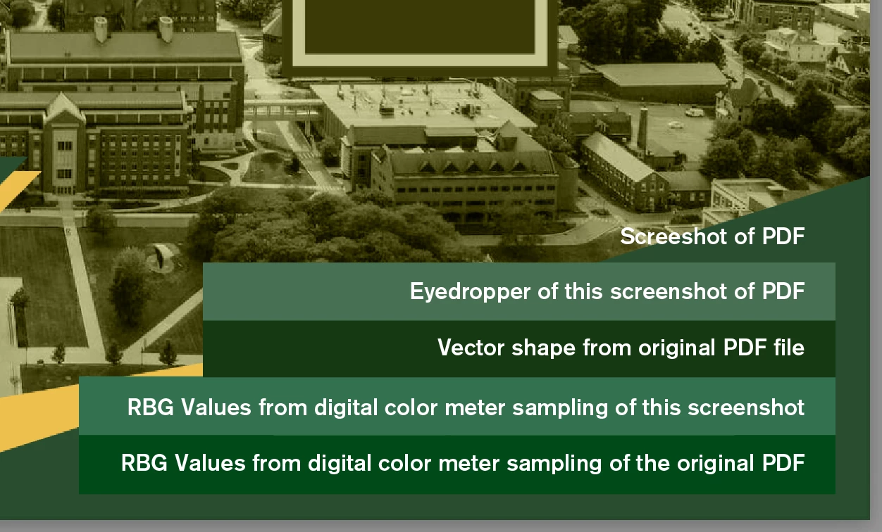 Eye dropping vector to vector or from one program to another works, but that's it. In short, if I want to match a color from an image in any Adobe program the only thing I can do is eyeball it, and I need it to be more accurate than that. If you could help I'd appreciate it.