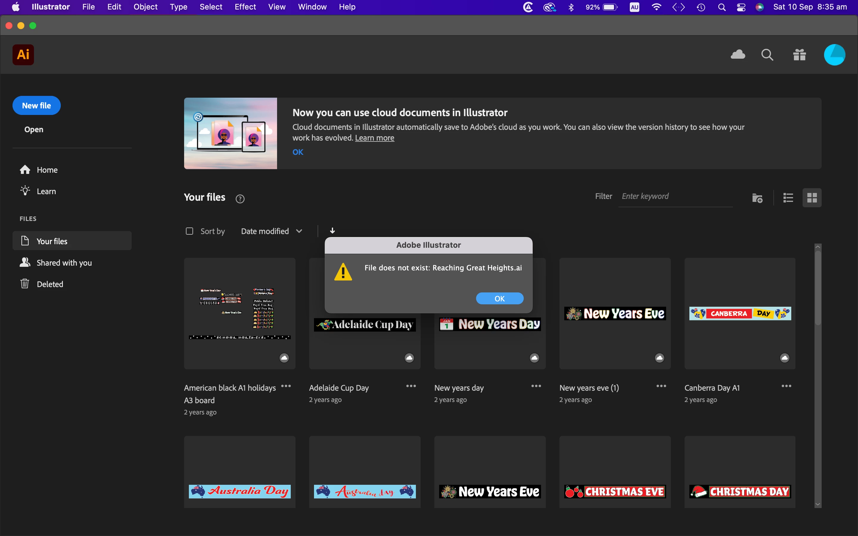 "File Does Not Exist" Error message Illustrator