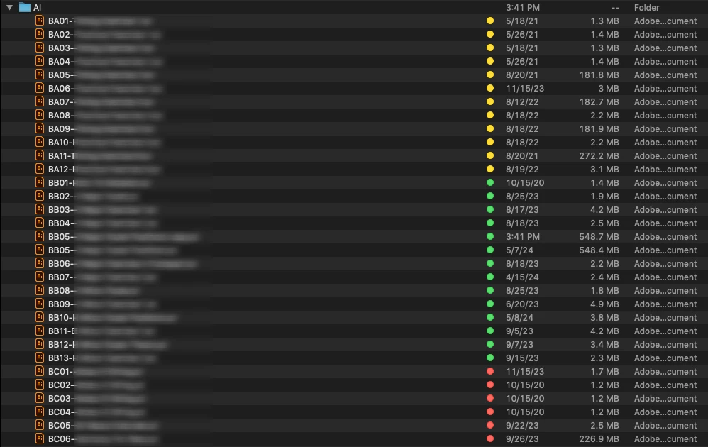 I just noticed some irregularities between document files sizes in a project I'm working on. For the longest while in this long term project of dozens and dozens of AI files, the average file size has been about 2.5MB. In some of the newer documents the file is over 500MB
