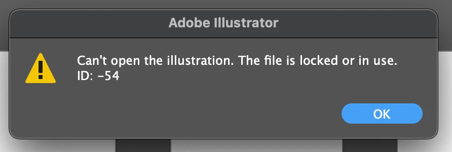 I'm getting this error message in Illustrator more often than not. A colleague send me files, via We Transfer and I still cannot open them I'm getting a message that the files are "locked or in use". This is impossible, because I'm trying to open files that were emailed to me. Attached is a screenshot of this message.