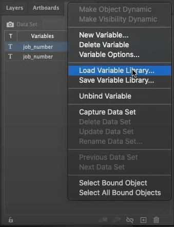 I then load the CSV file by selecting Load Variable Library from the Menu...