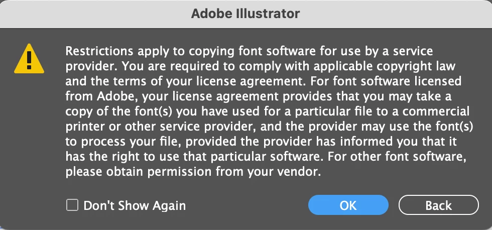 I have a font installed through Adobe Fonts. Usually, when I export the illustrator file it will also export the font together. However, this time it is not exporting the font that I need to send to the print company. It showed a permission restriction thing when I packaged the document (see attached). But since the font is from Adobe Fonts I thought it would copy the file and save it in the package folder.